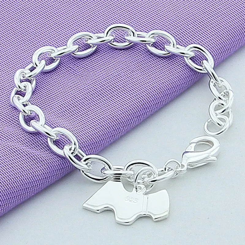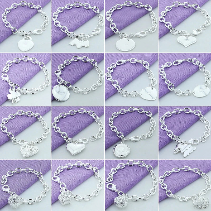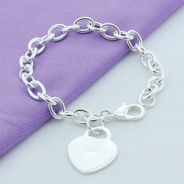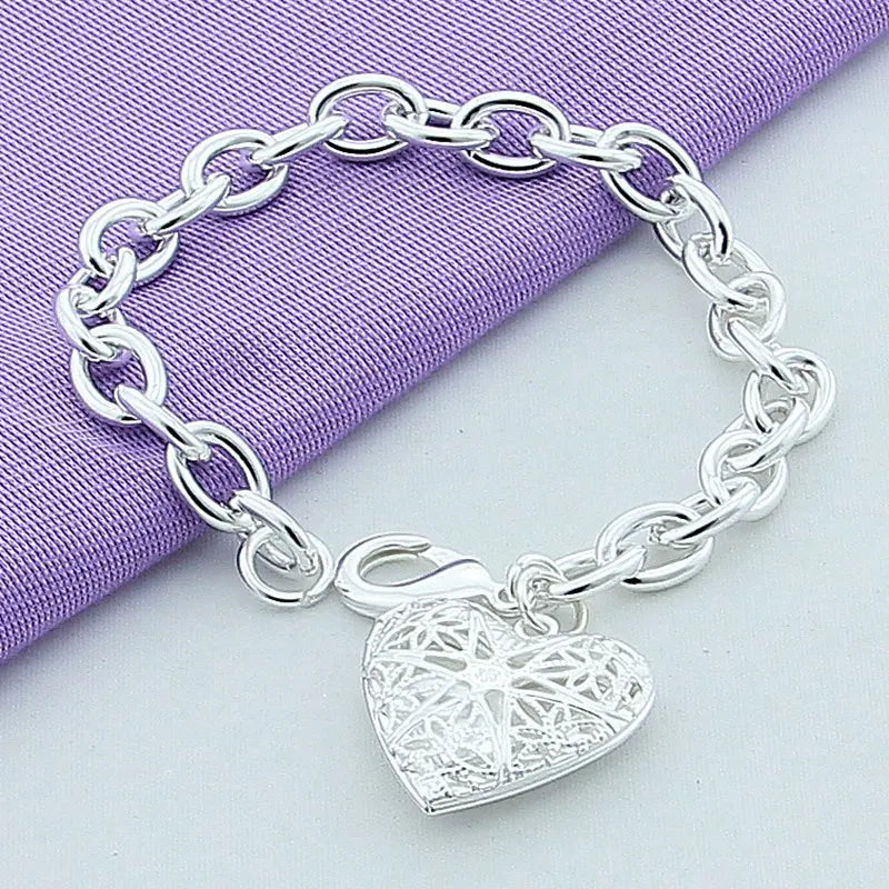 - 925 silver chain link bracelet with round heart design