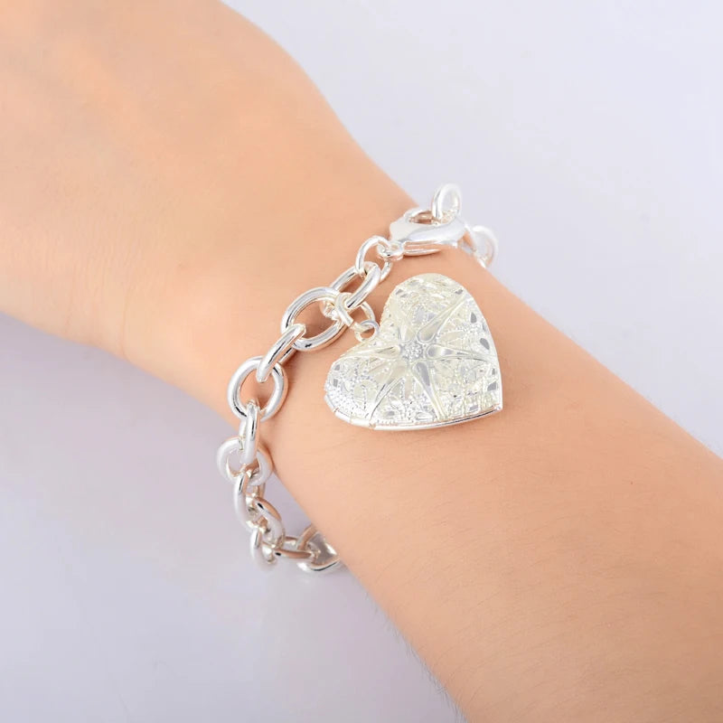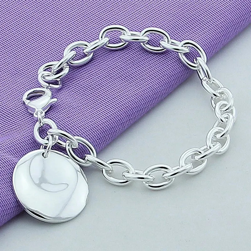 Elegant chain link bracelet crafted from 925 silver with a round heart design. Perfect for women and men.