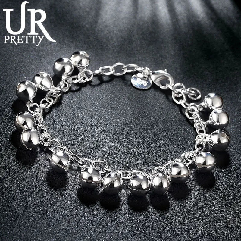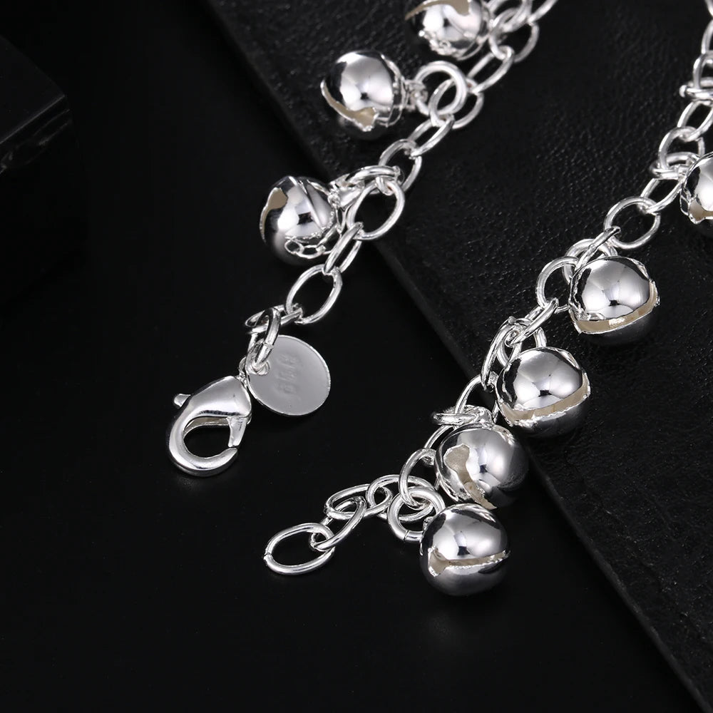 - 925 sterling silver charm bell chain bracelet