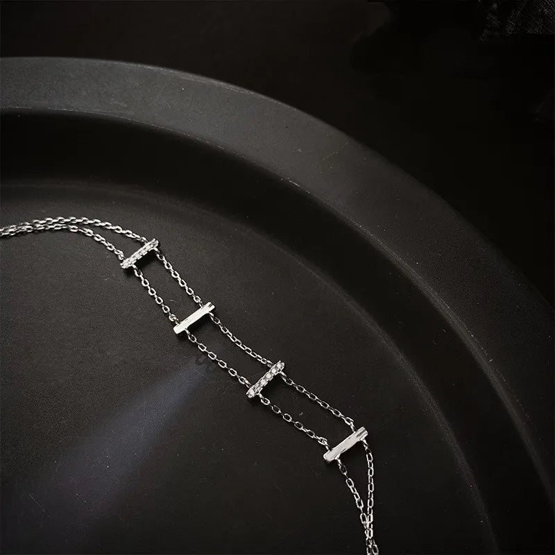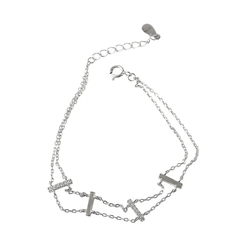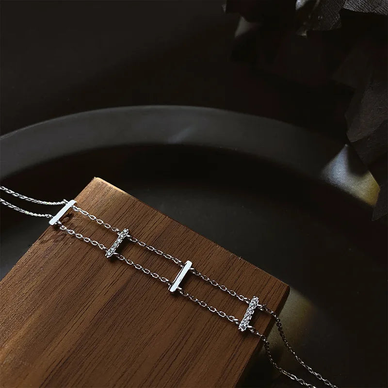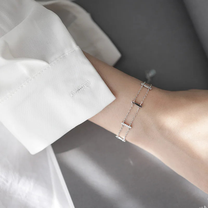 This elegant bracelet features a double layer design with geometric charms, perfect for weddings, parties, or as a gift.
