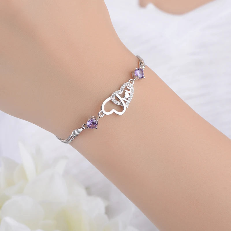 Elegantly crafted 925 sterling silver bracelet with top quality purple crystal, perfect accessory for girls and ladies.