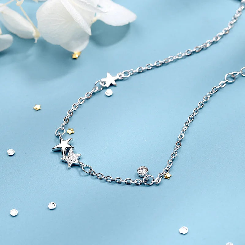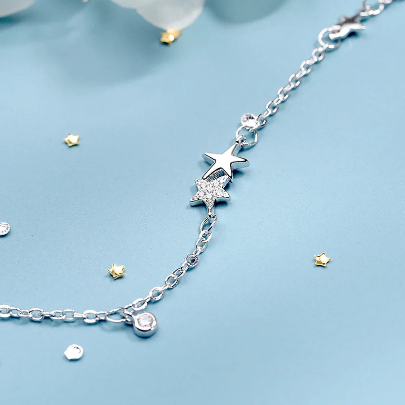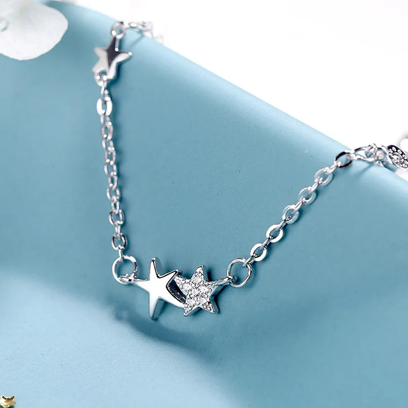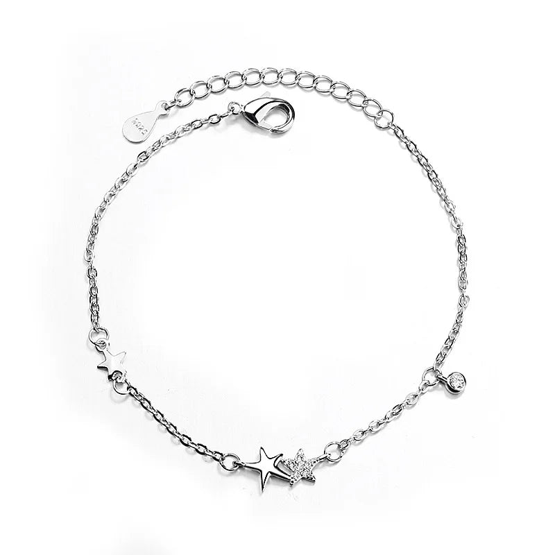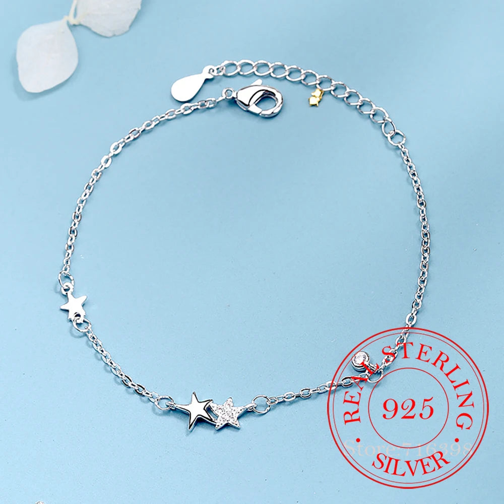Elegant 925 sterling silver bracelet featuring crystal star charm. Perfect for birthday parties or as a gift.