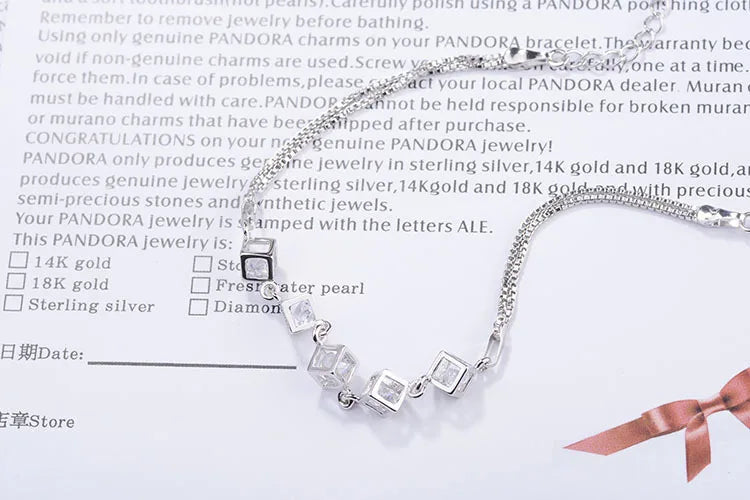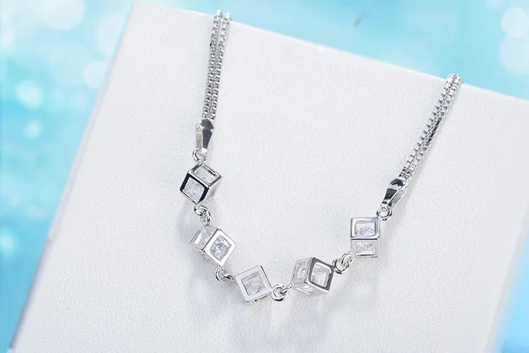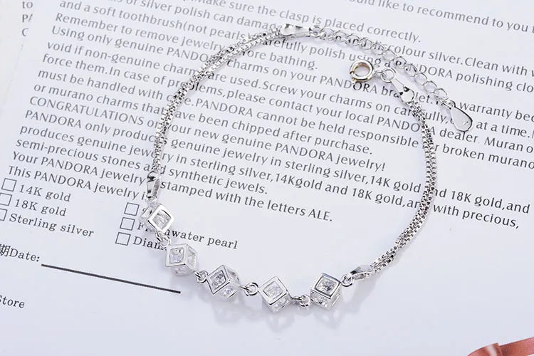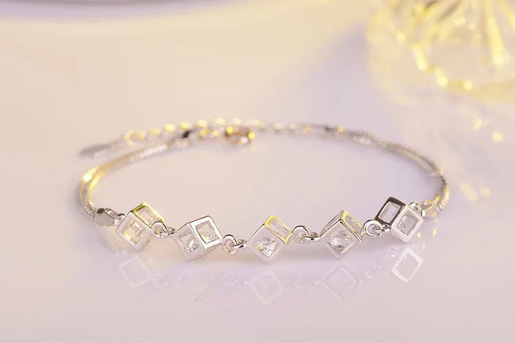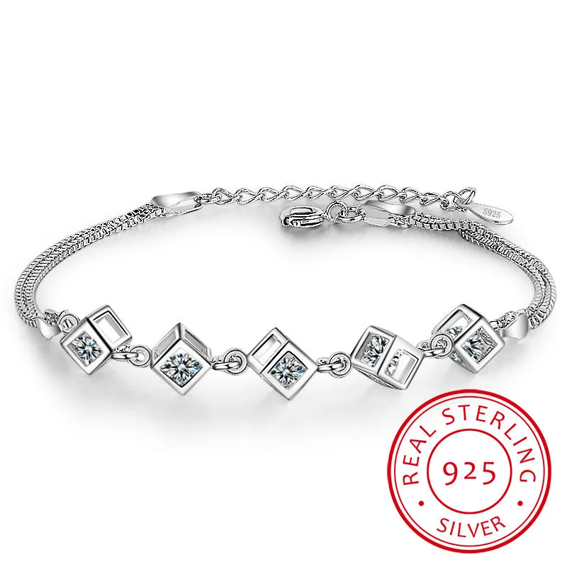 This stunning 925 sterling silver bracelet features a cube box design for a modern and chic look.