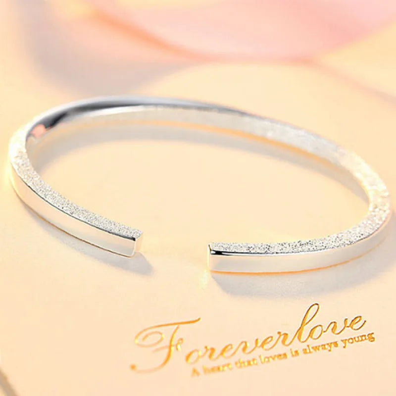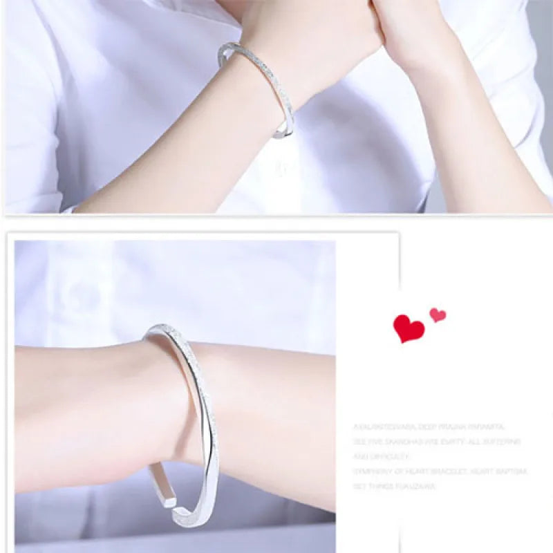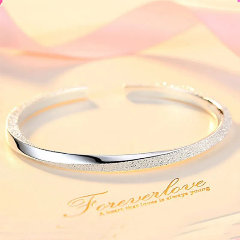 925 Silver Cuff Bangles Open Polishing Glaze Whirl Lucky Bracelet