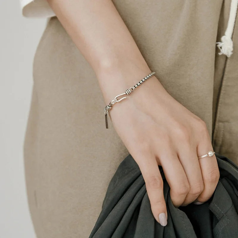 This 925 silver double hook box chain bracelet features a punk style design, perfect for couples who want to express their unique style.