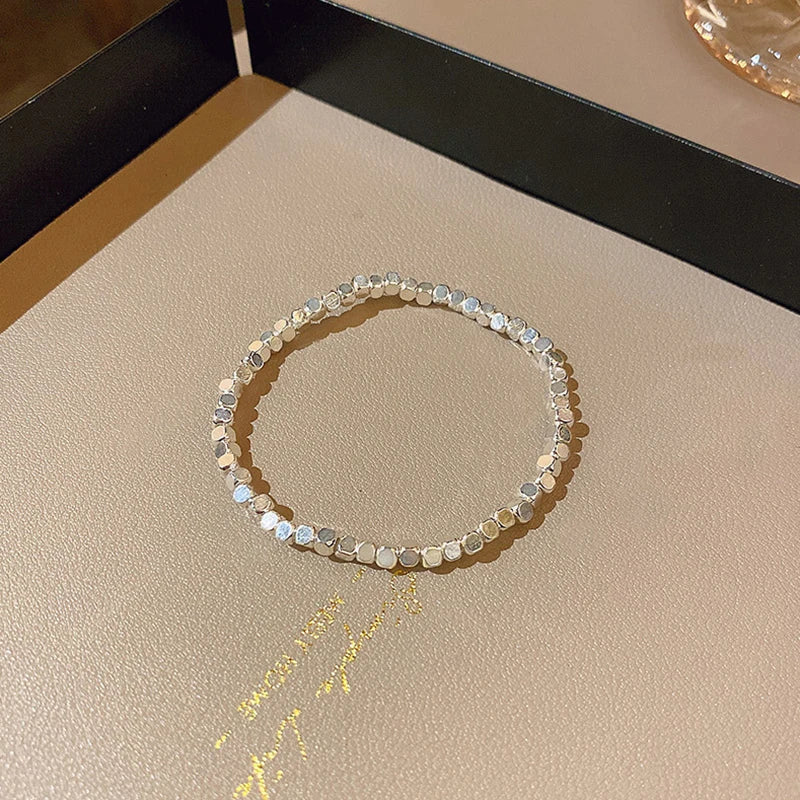 Elegant 925 sterling silver bracelet featuring a geometric design, perfect for women.