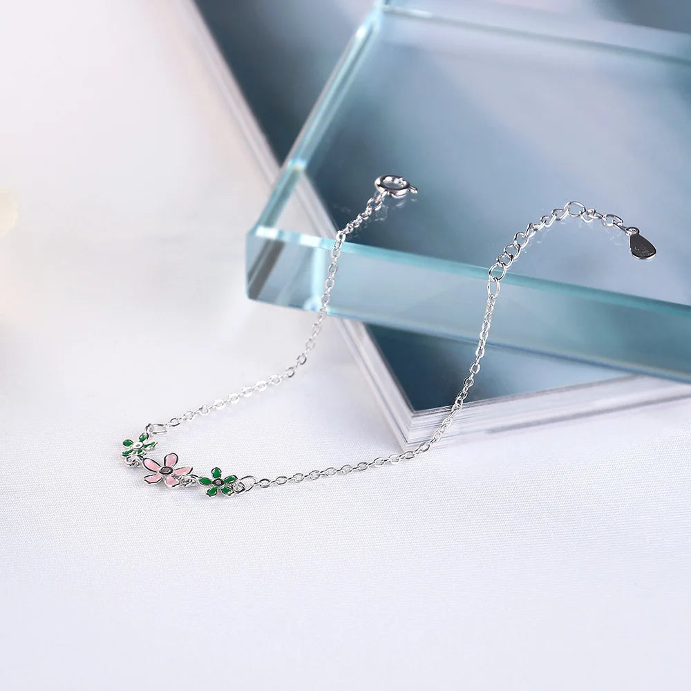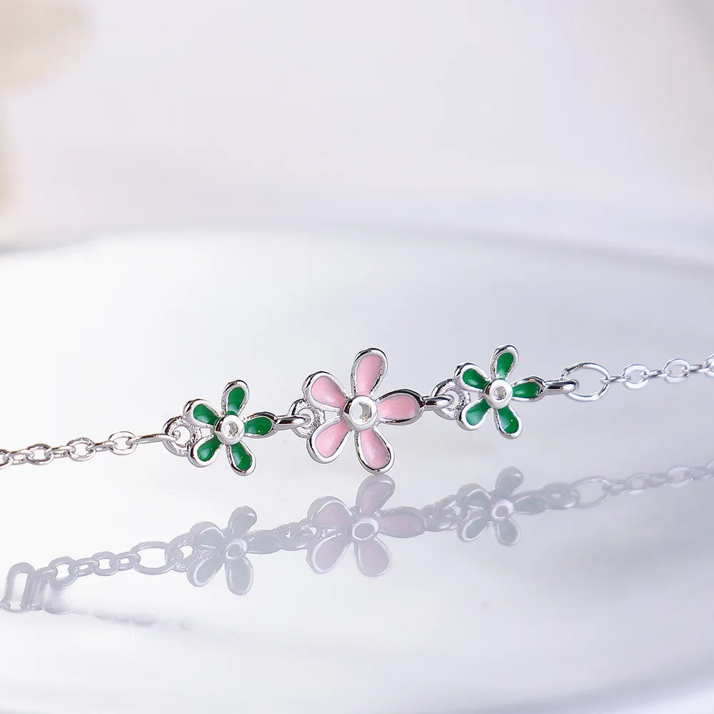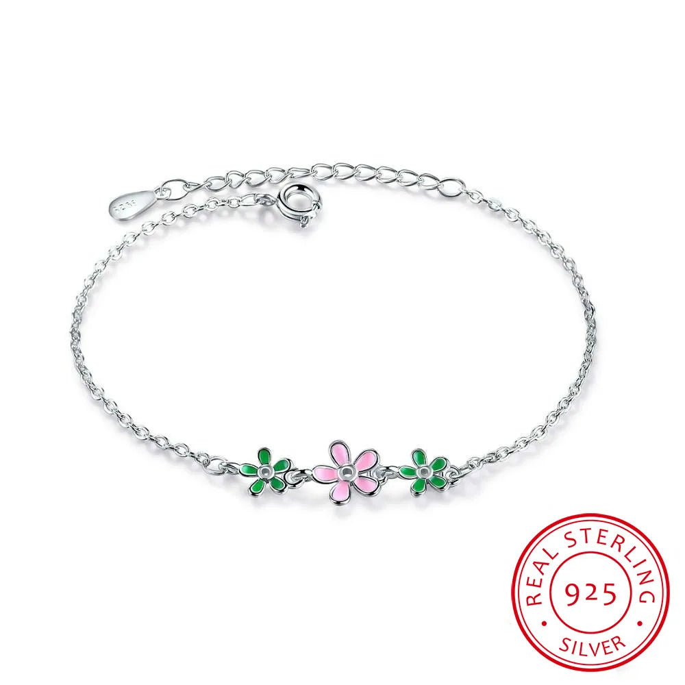 Elegant 925 sterling silver drop bracelet featuring glaze leaves and flower daisies. Perfect for everyday wear or special occasions.