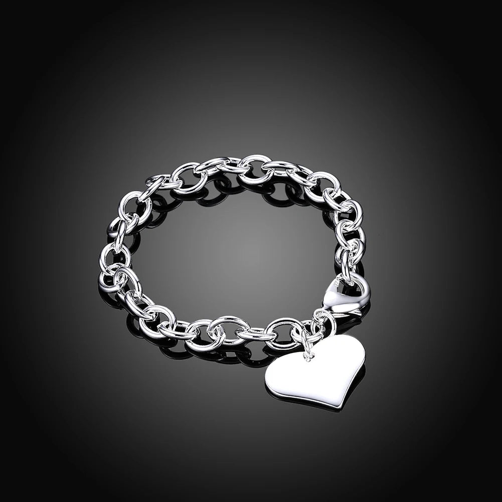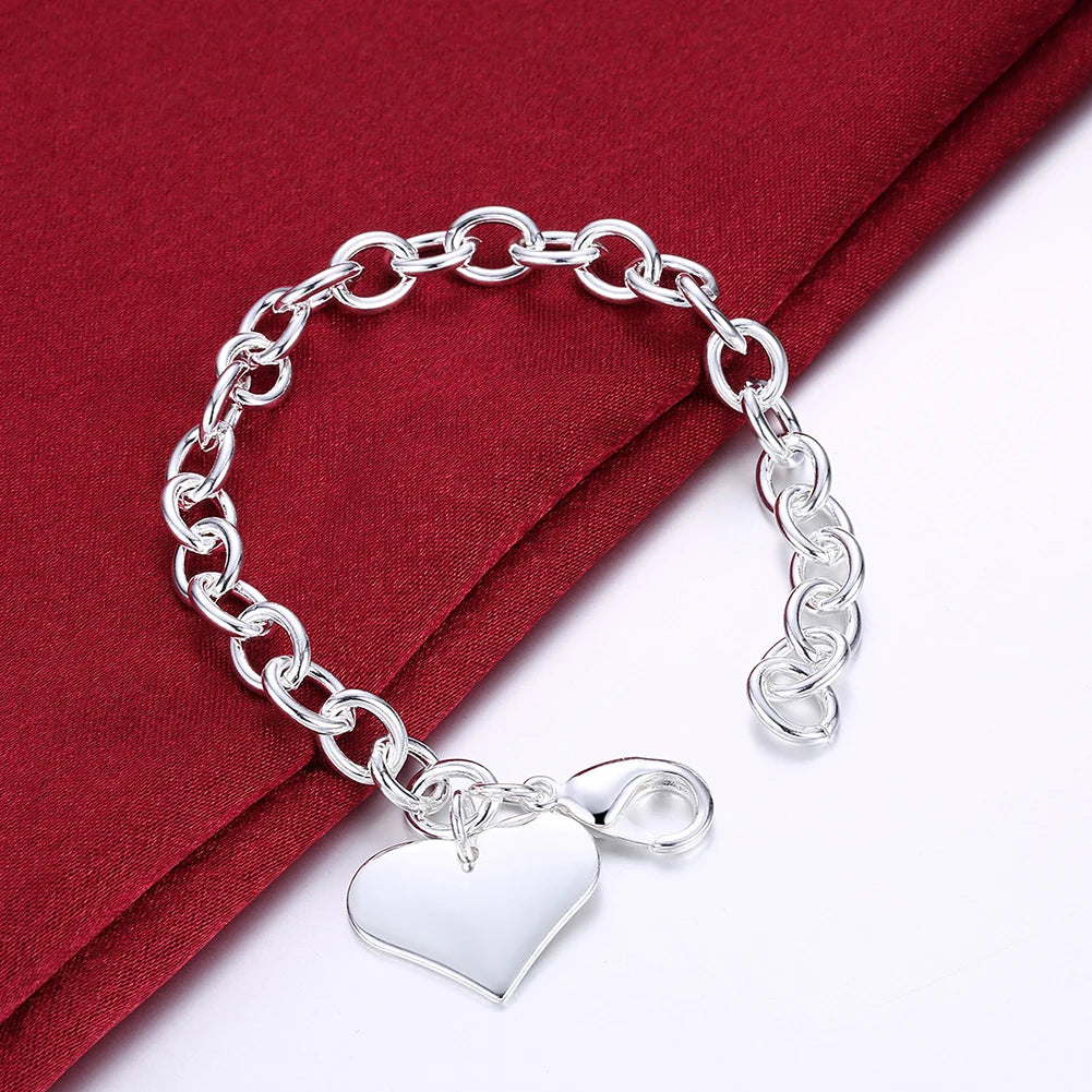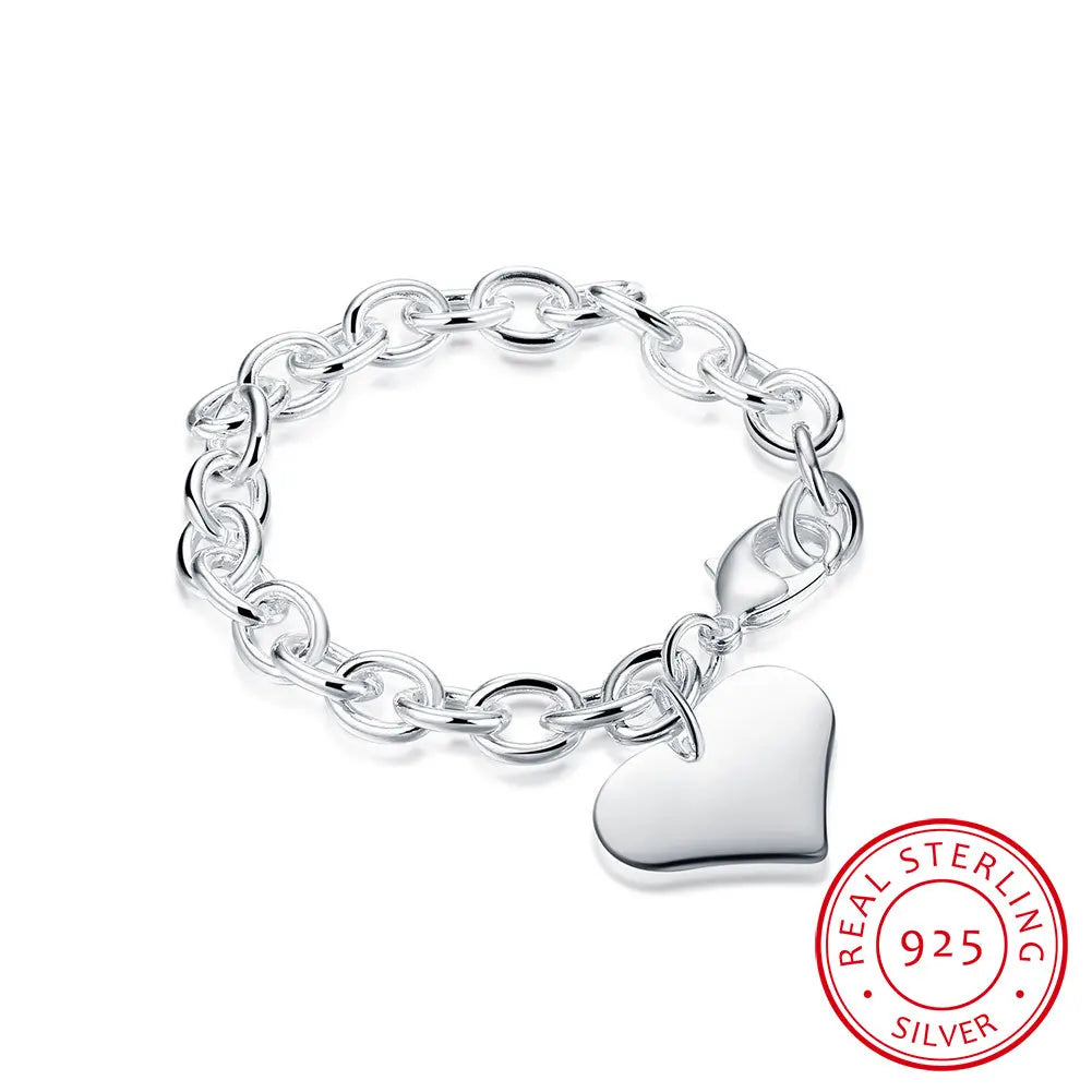 This 925 sterling silver heart charm bracelet is a stylish accessory for both men and women. It features a polished finish and is perfect for everyday wear.