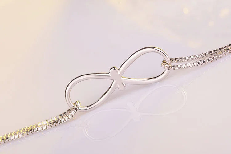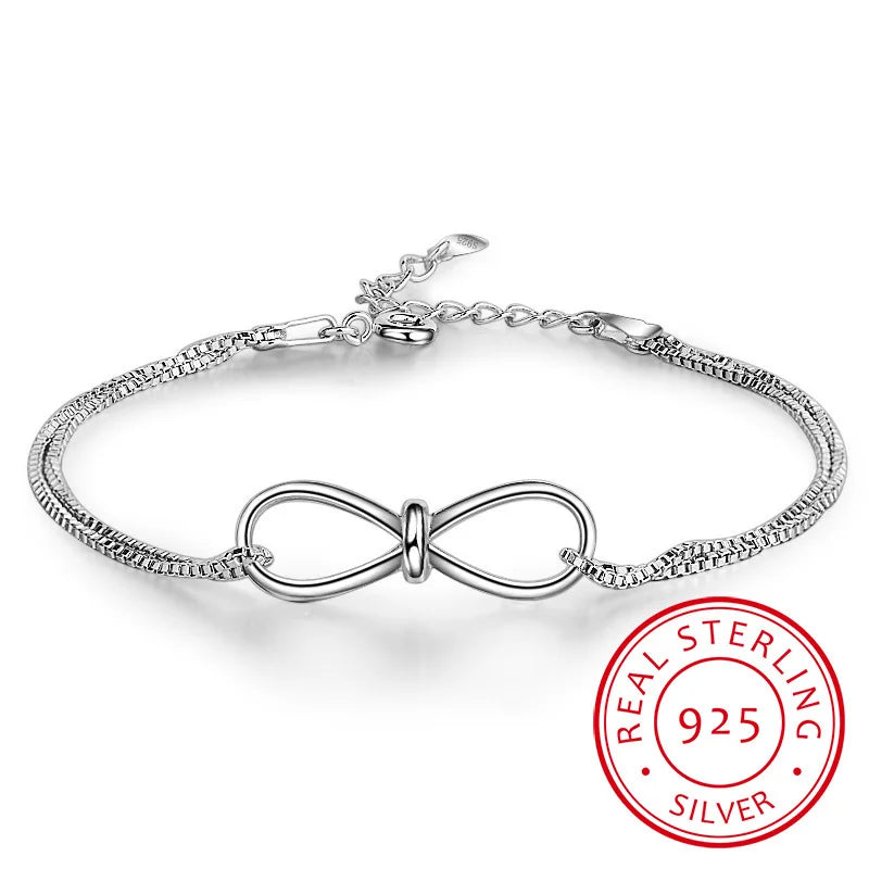 Elegant 925 sterling silver bracelet for women with infinity design and sparkly cubic zirconia. Perfect gift for any occasion.