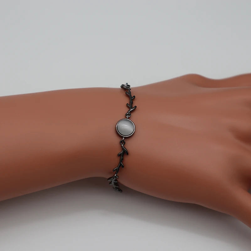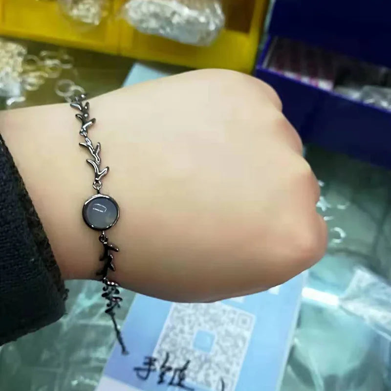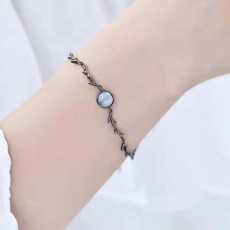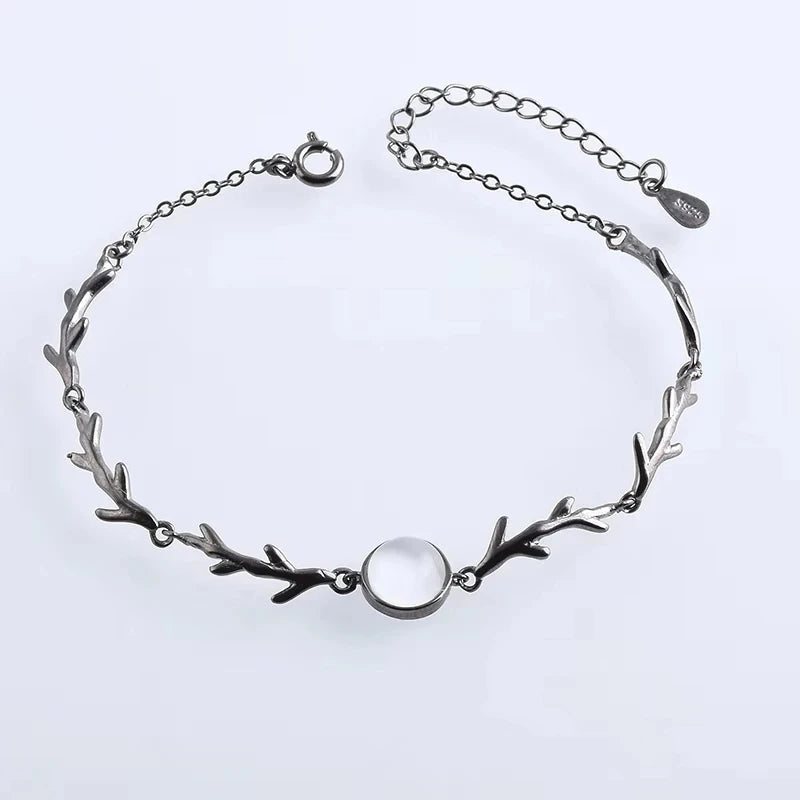 Elegant 925 sterling silver bracelet featuring a moonstone branch charm. This adjustable chain bracelet is electroplated and makes a perfect gift for women.