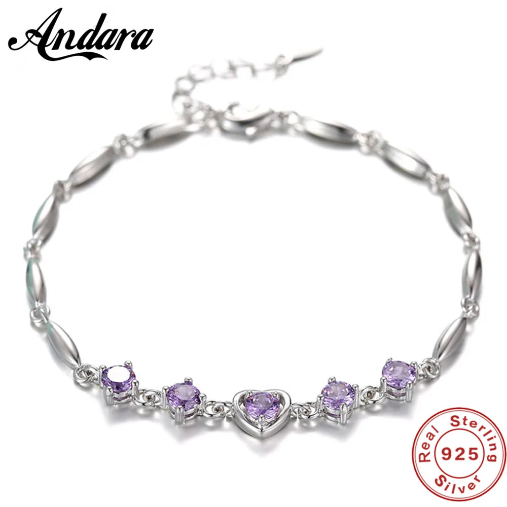 - 925 sterling silver bracelet with purple crystal zircon