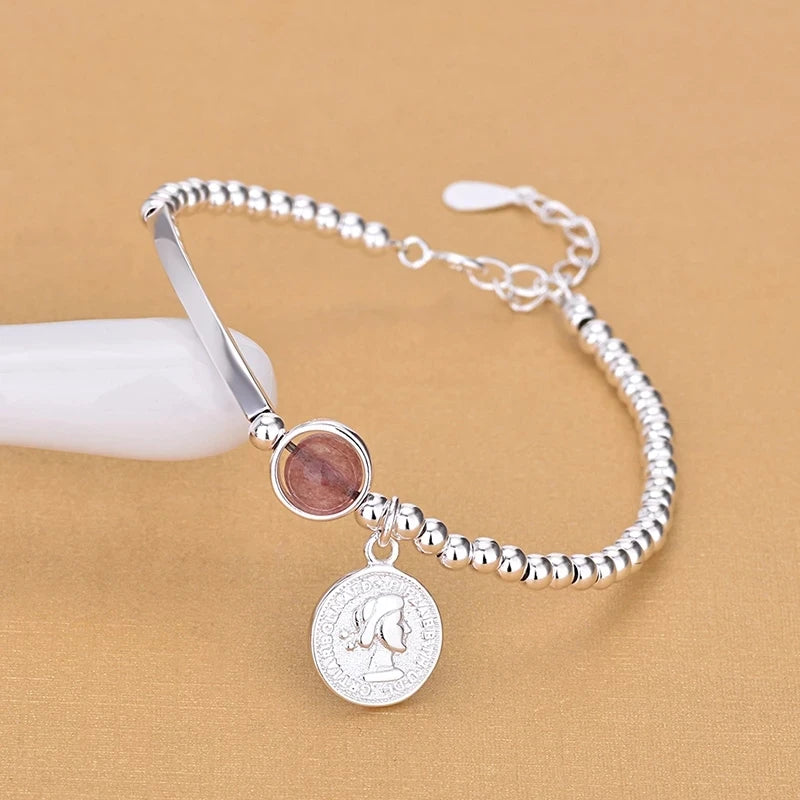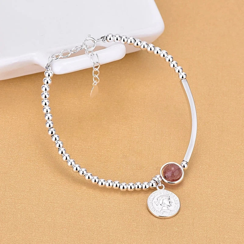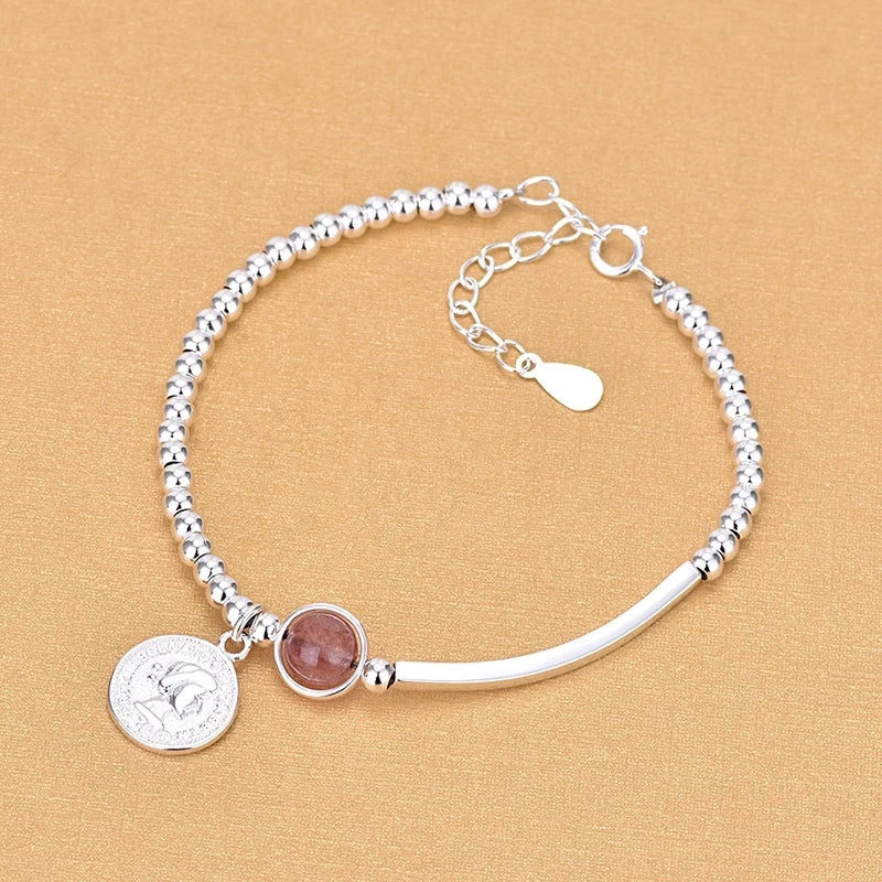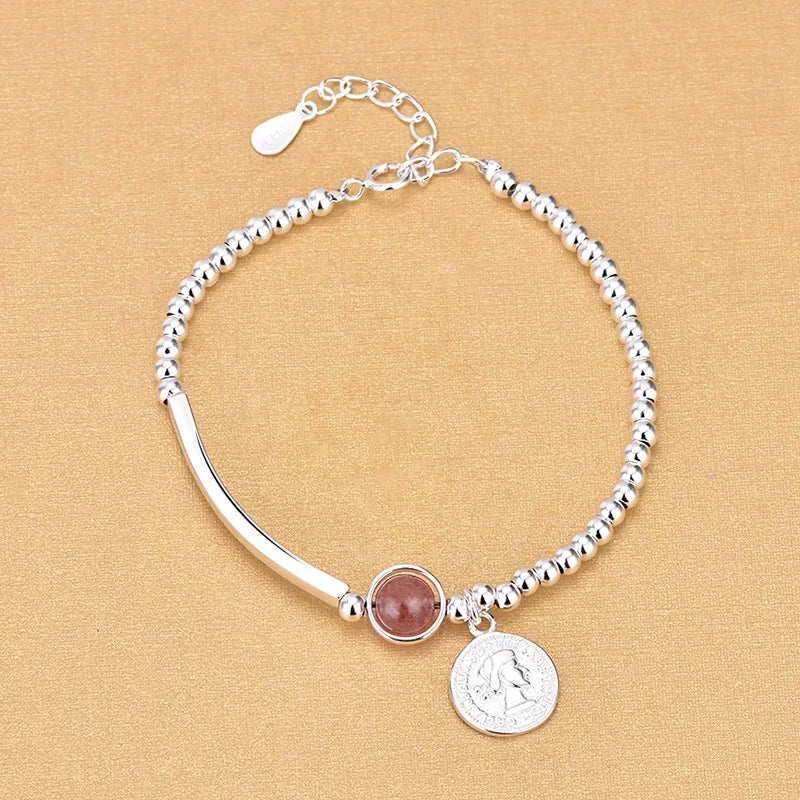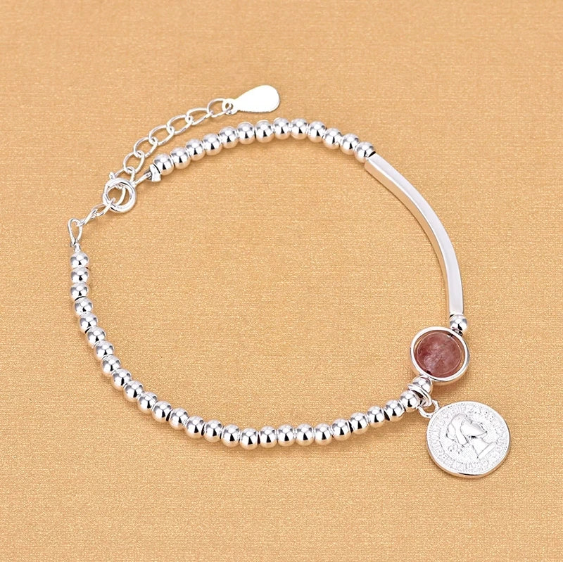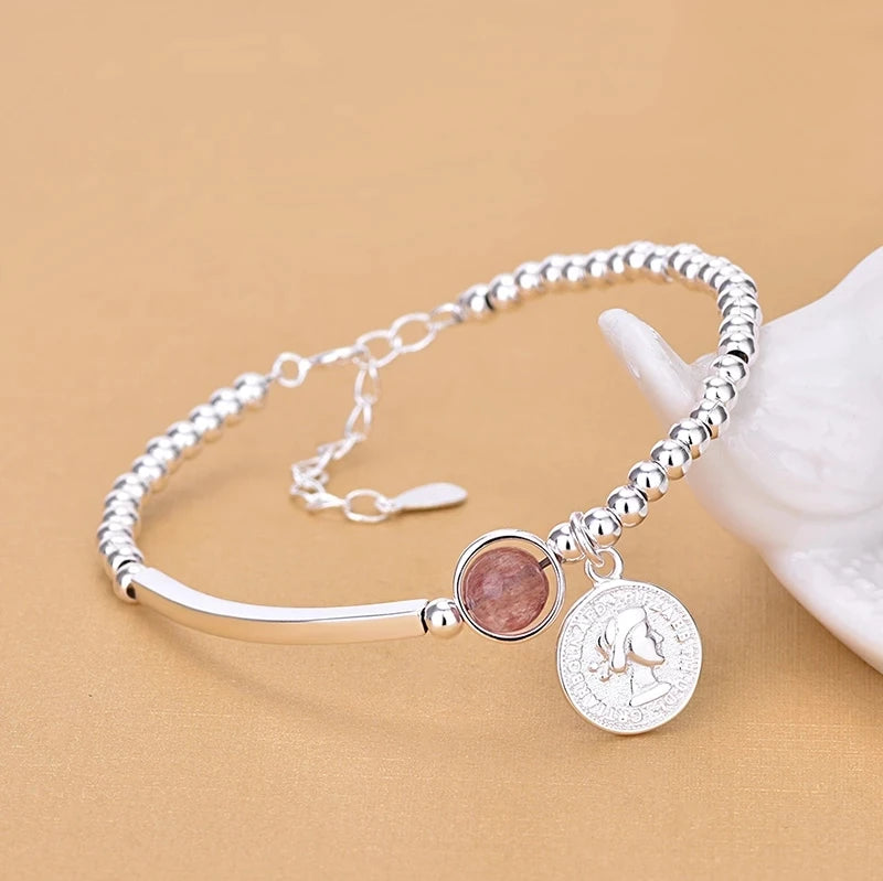 Add a touch of sparkle to your outfit with this exquisite 925 sterling silver bracelet featuring strawberry crystal round beads. Perfect for weddings, parties, or as a gift for a loved one.