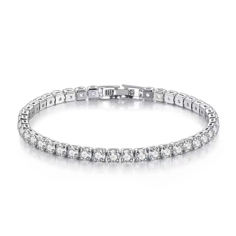 This elegant tennis bracelet features 4mm cubic zirconia stones set in 925 sterling silver. Perfect for weddings or as a gift!