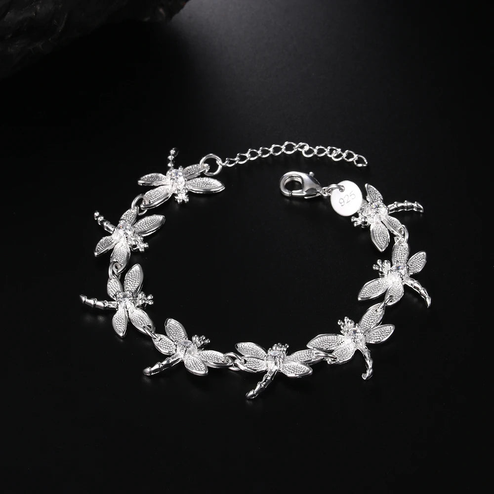 Add a touch of elegance to your look with this stunning 925 sterling silver bracelet featuring a crystal dragonfly design. Perfect for parties, weddings, or as a Christmas gift.