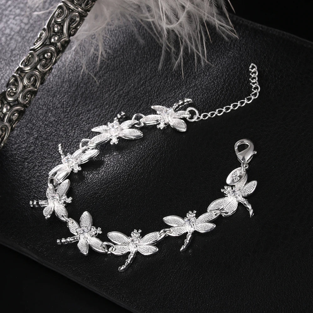 - 925 sterling silver bracelet with crystal dragonfly design