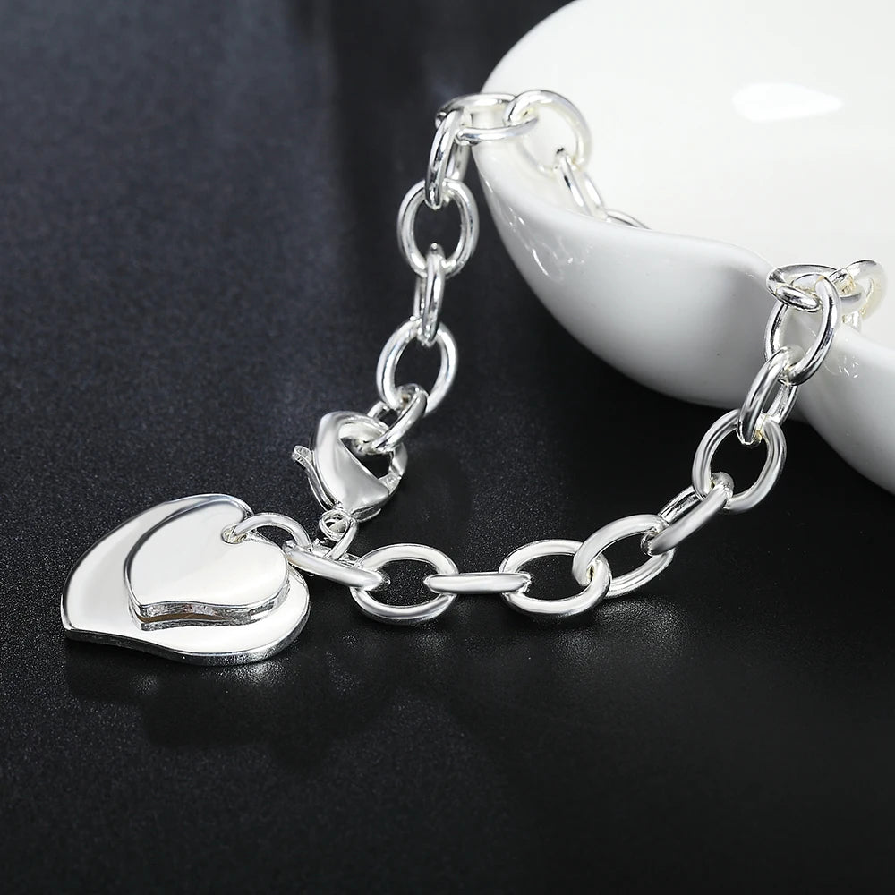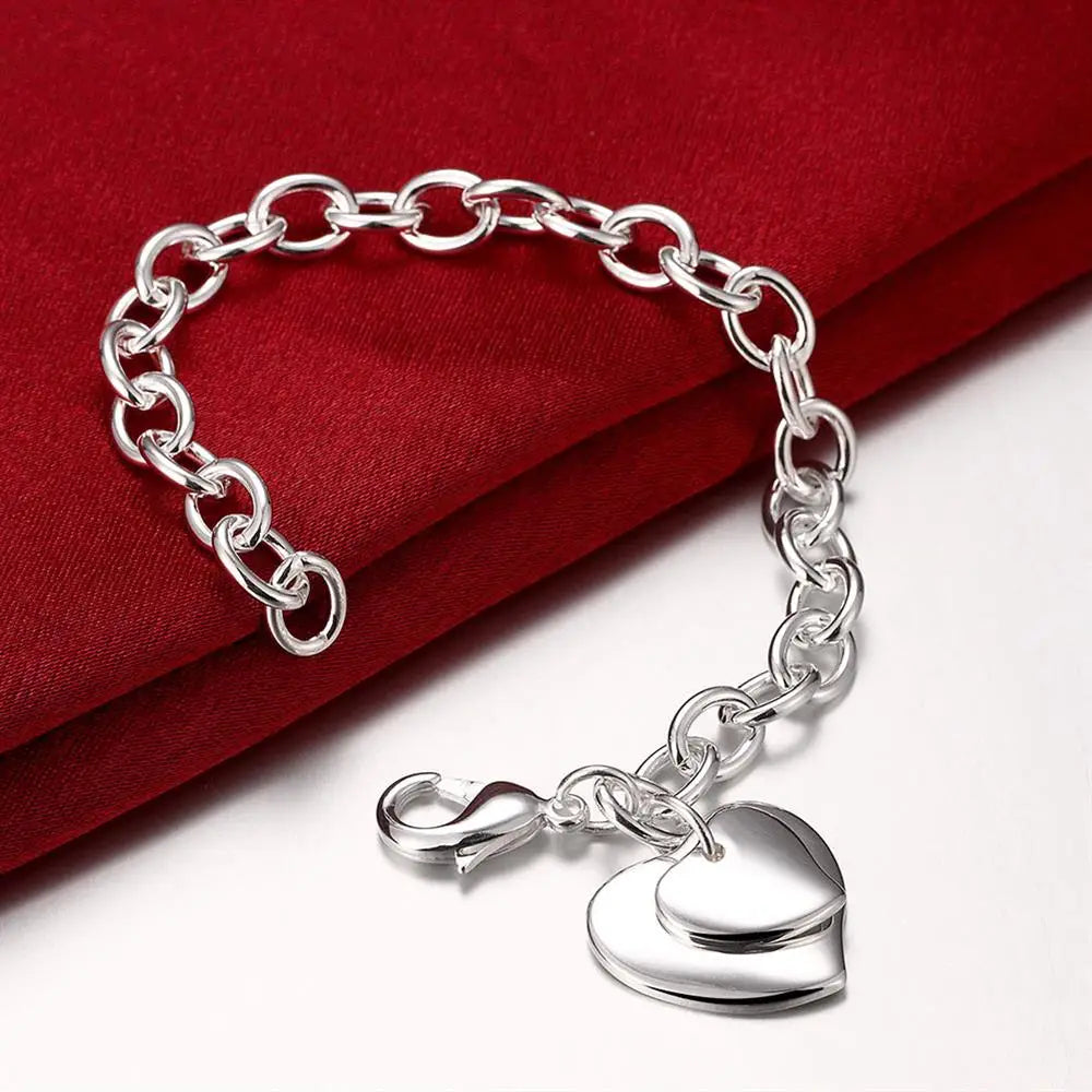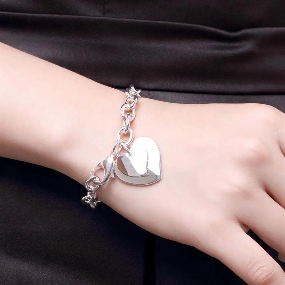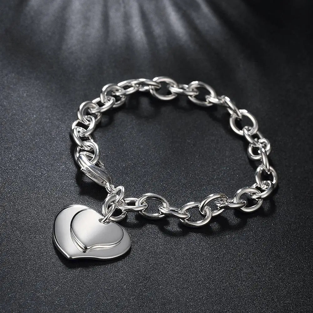 This charming bracelet features a 925 sterling silver double heart card pendant, perfect for weddings, parties, and Christmas. A noble piece of jewelry that will add elegance to any outfit.