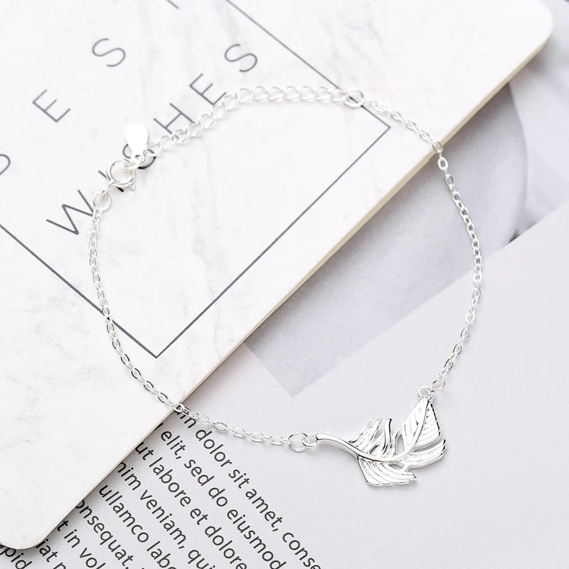 Elegant bracelet made of 925 sterling silver featuring a charming feather design. This bracelet adds a touch of personality and sweetness to any outfit.