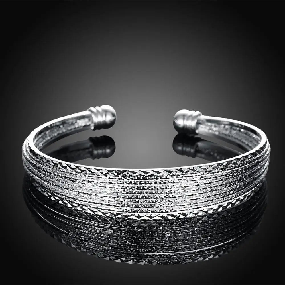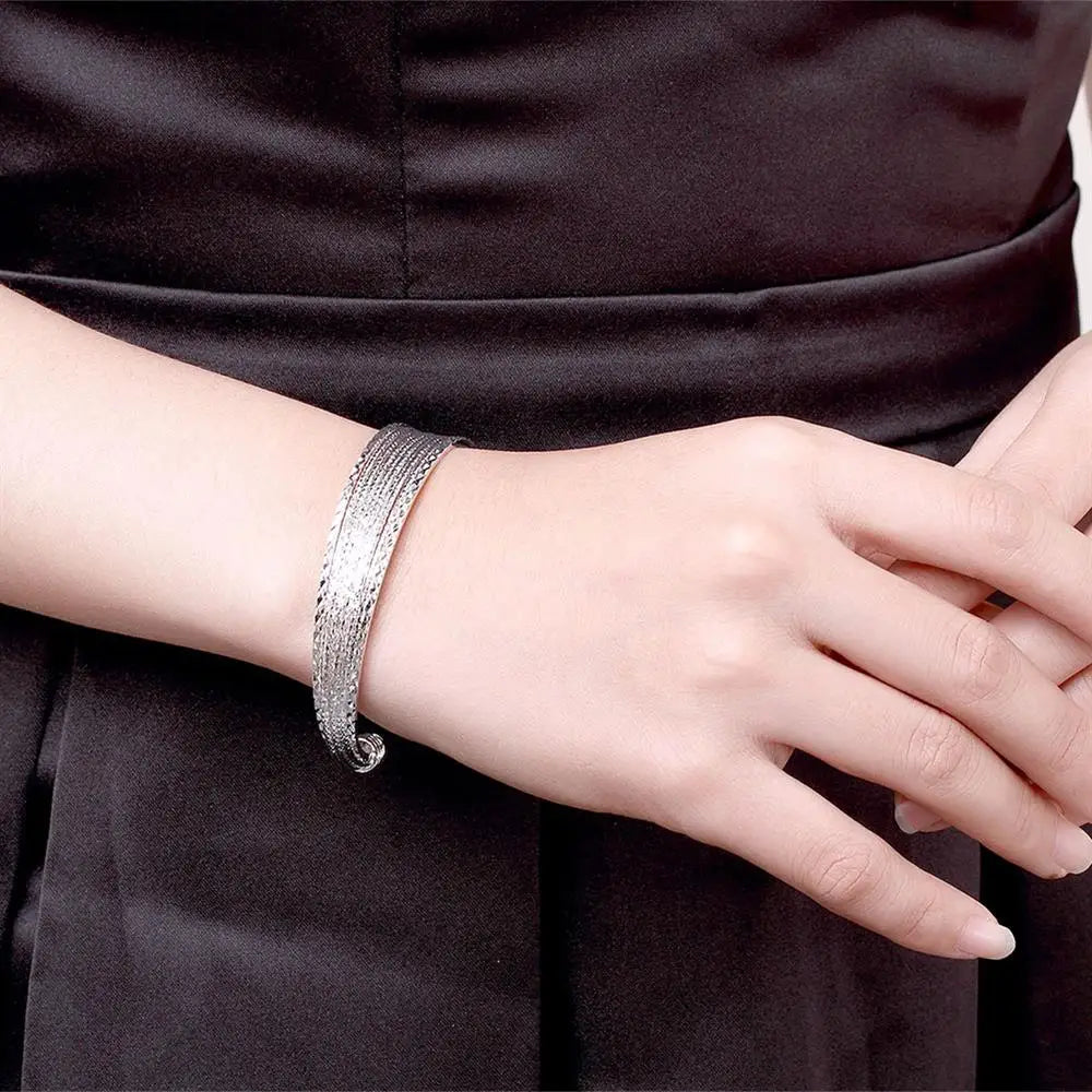 This charm bracelet is made of 925 sterling silver and features a lucky chain design. Perfect for parties, weddings, or everyday wear with an adjustable fit.