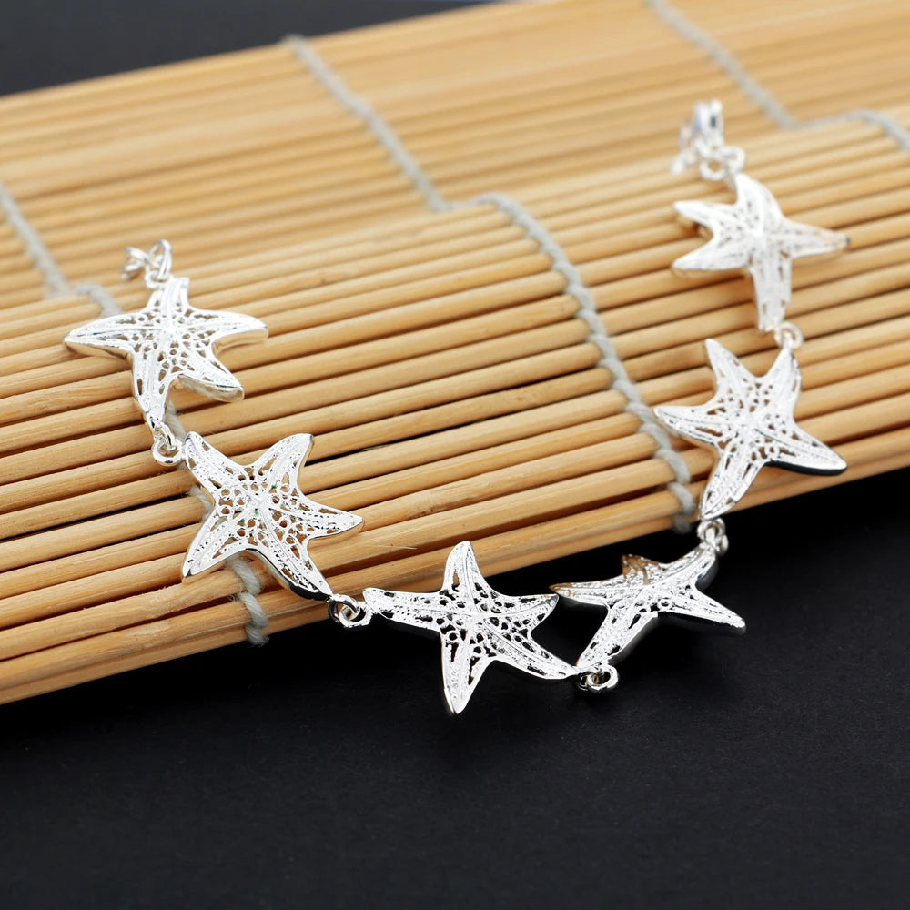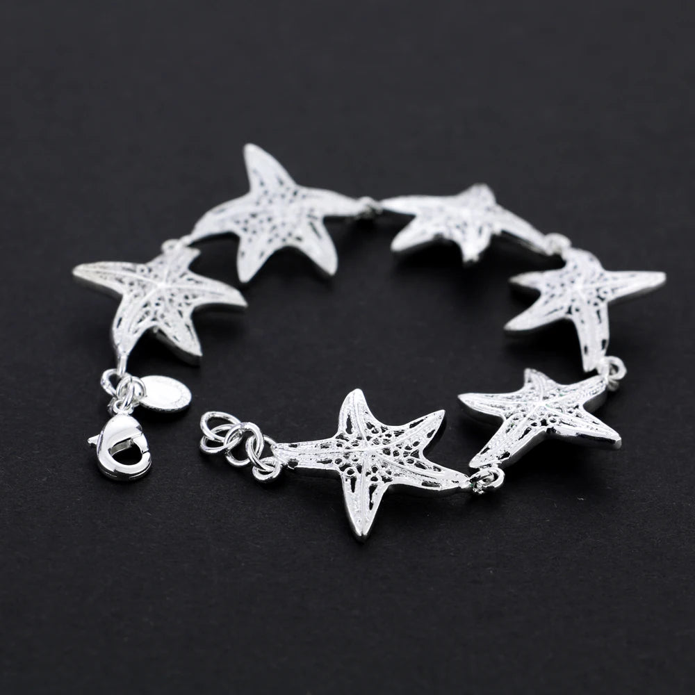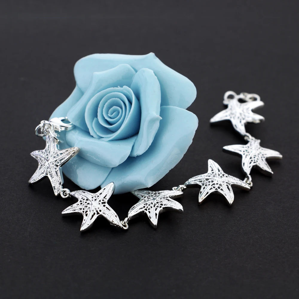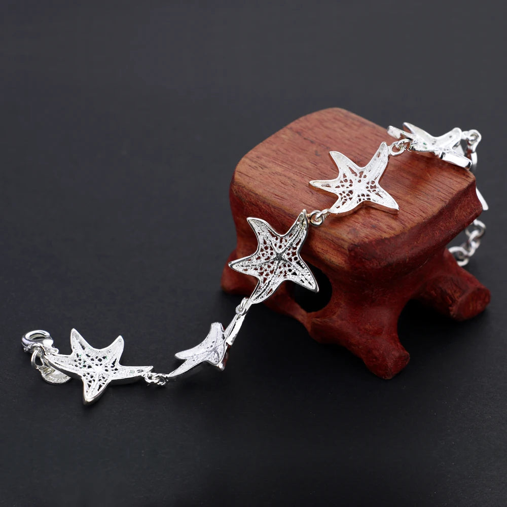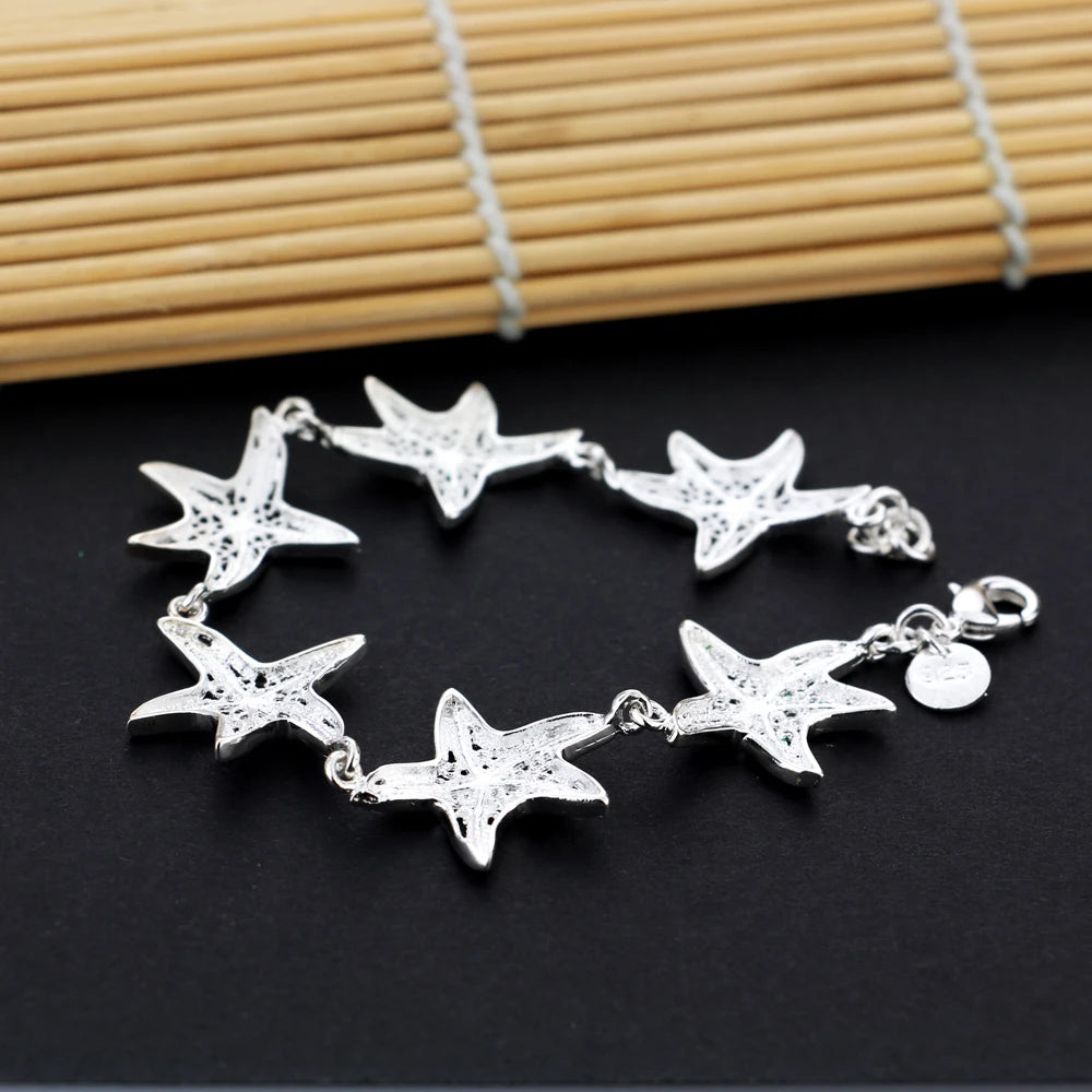 This stunning 925 sterling silver bracelet features a starfish charm, perfect for weddings, parties, or Christmas. A fine jewelry piece that complements any outfit.