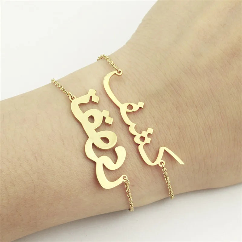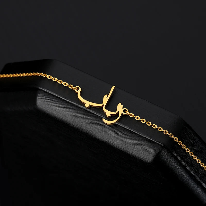 Unique Islamic jewelry made of stainless steel with personalized Arabic name. Features holy Quran hand chains for both men and women.