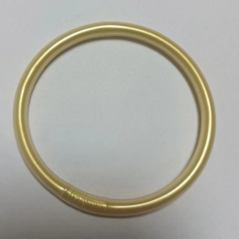 Add a pop of color to your outfit with this stylish one-row silicone bangle bracelet from Bilandi Jewelry. Perfect for parties and everyday wear.