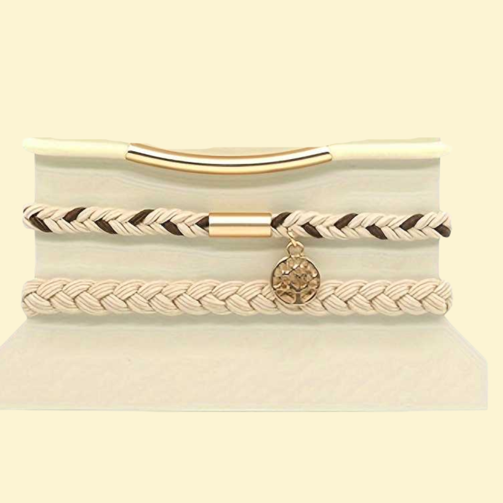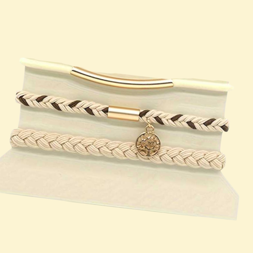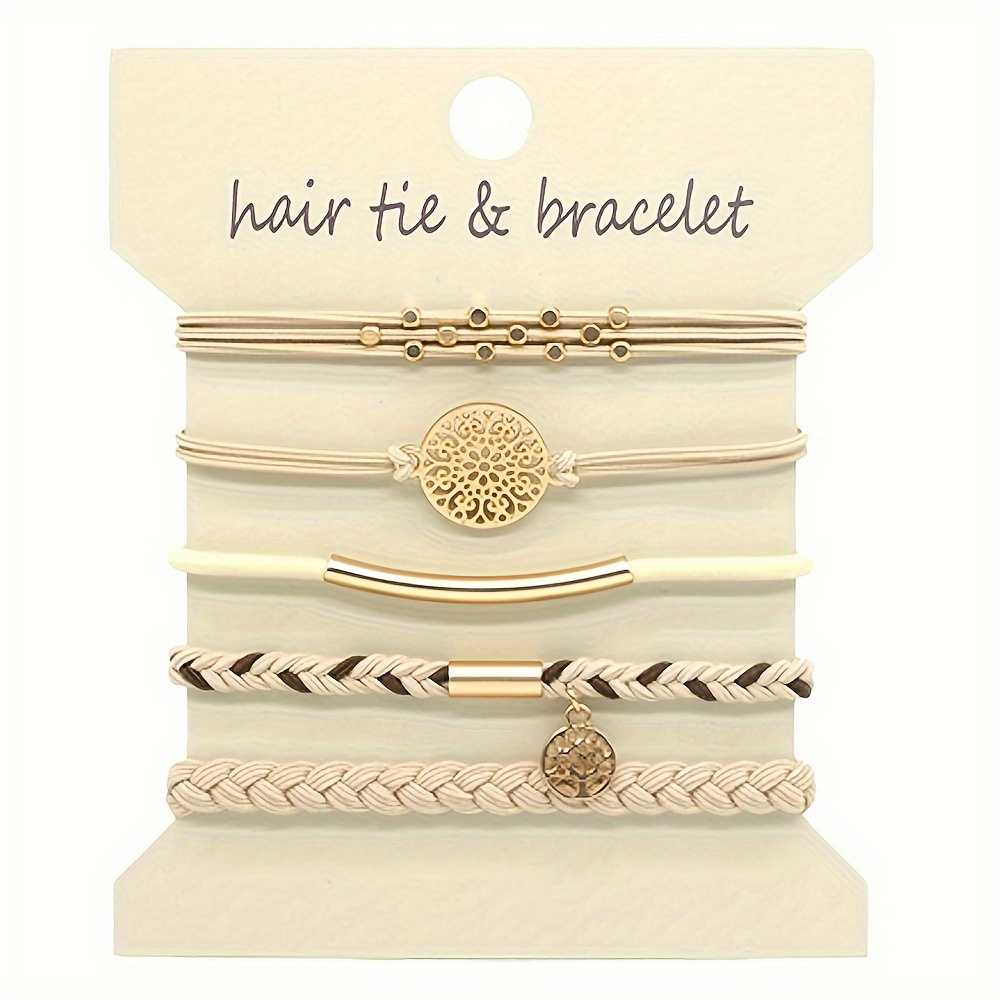 Bohemian Style Hair Tie and Bracelet Set 5pcs Elastic Jersey Bands for Women