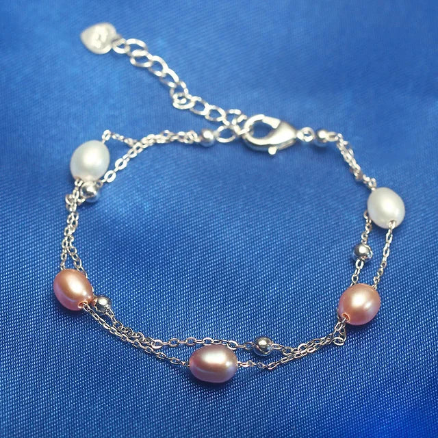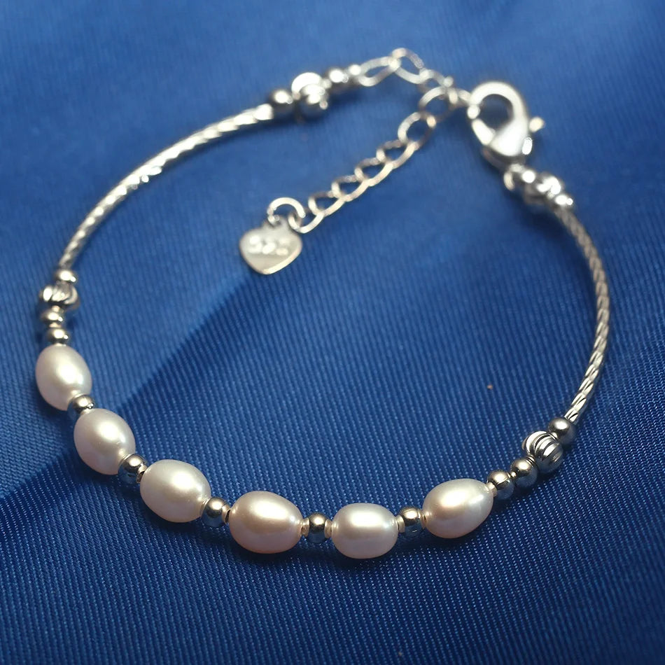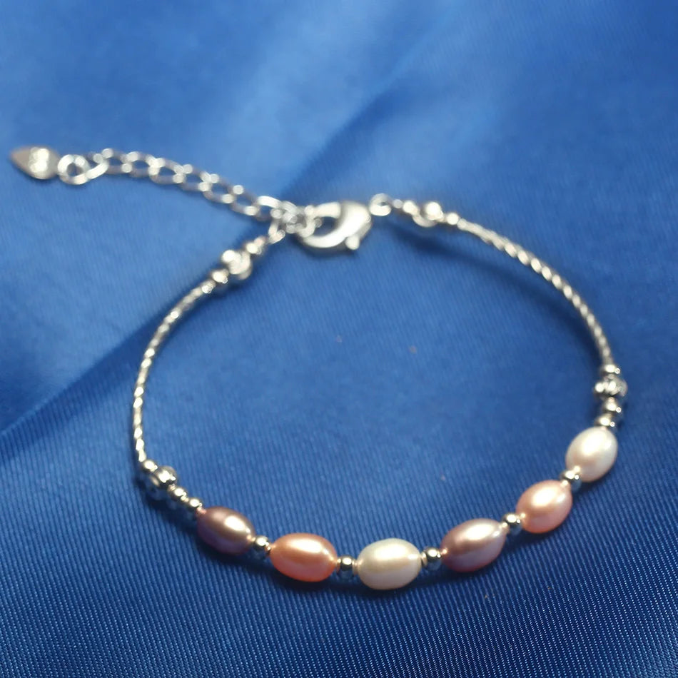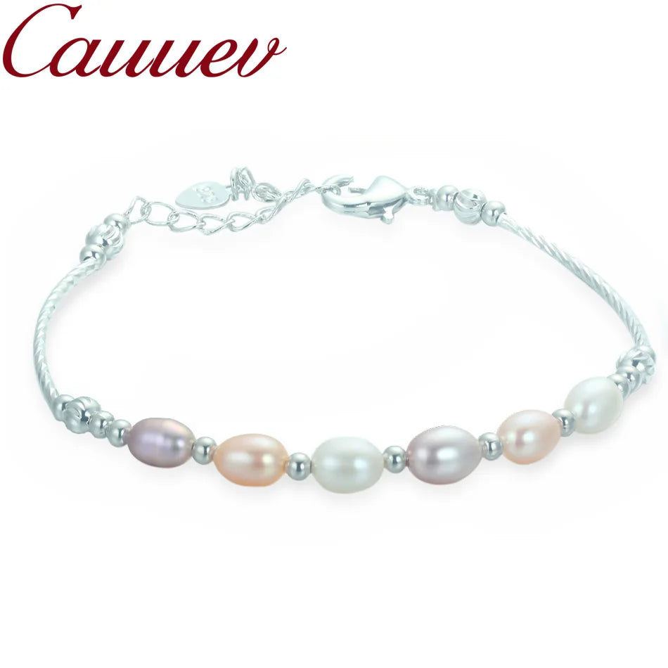 Cauuev Freshwater Pearl Bracelet Tube 6mm Rice Pearl Adjust Bangle