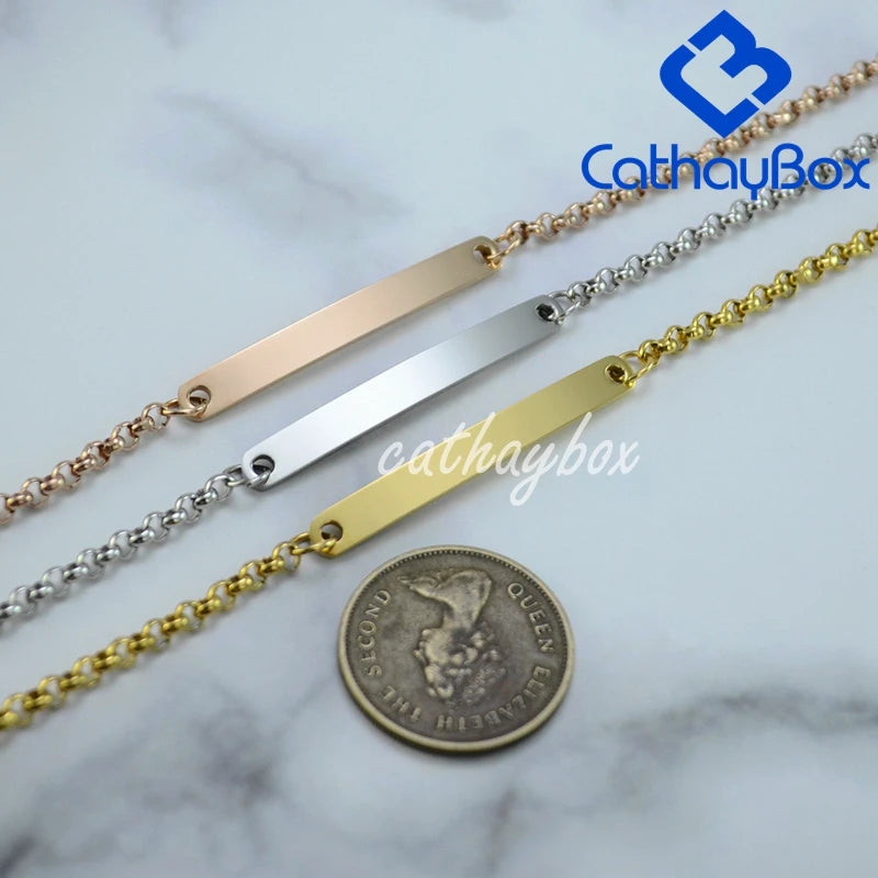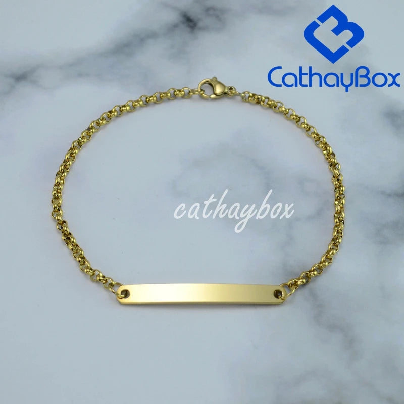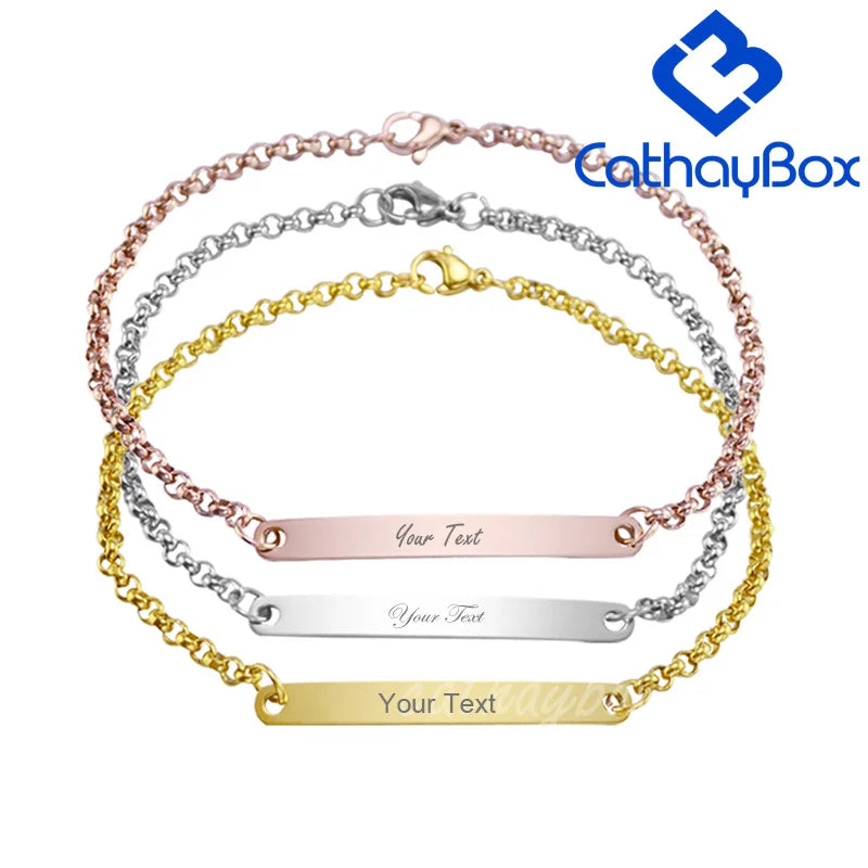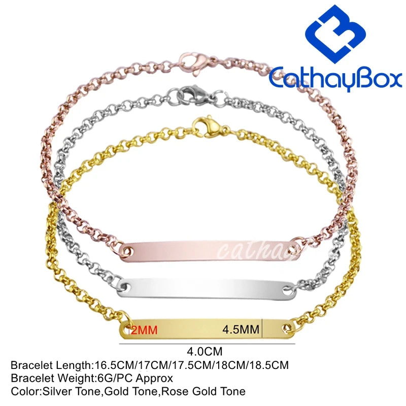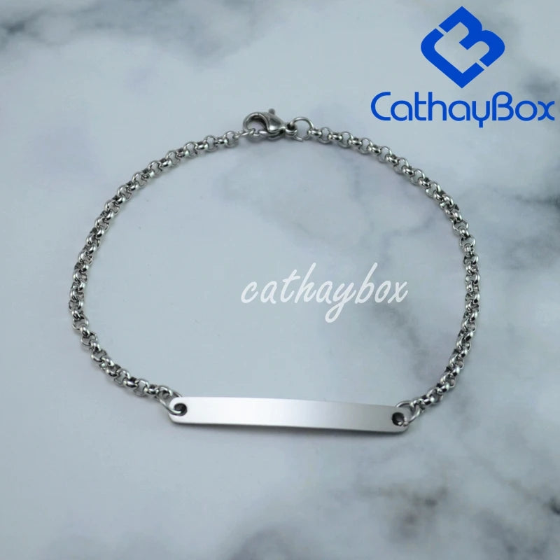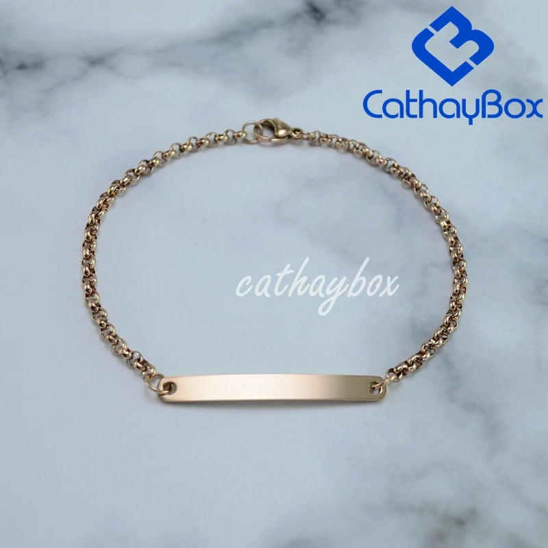 This personalized bracelet features a beautiful silver and rose tone design crafted from high-quality stainless steel. Add a special touch with your name engraved on the bracelet.