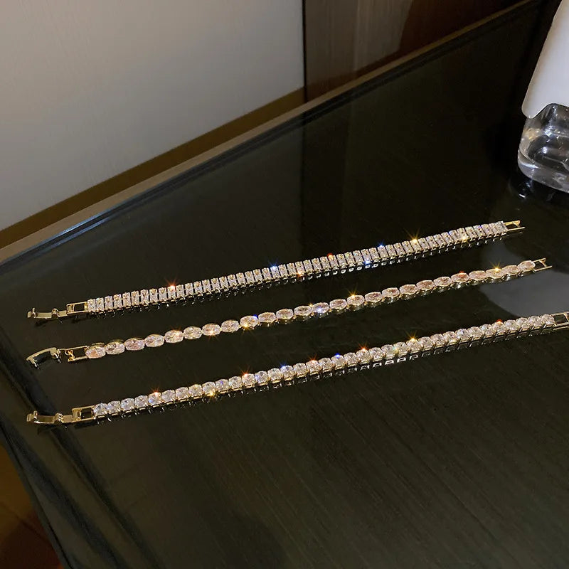 Elevate your style with this stunning geometric zircon bracelet, perfect for adding a touch of elegance to any outfit. Embrace the European and American temperament with this exquisite piece of jewelry.