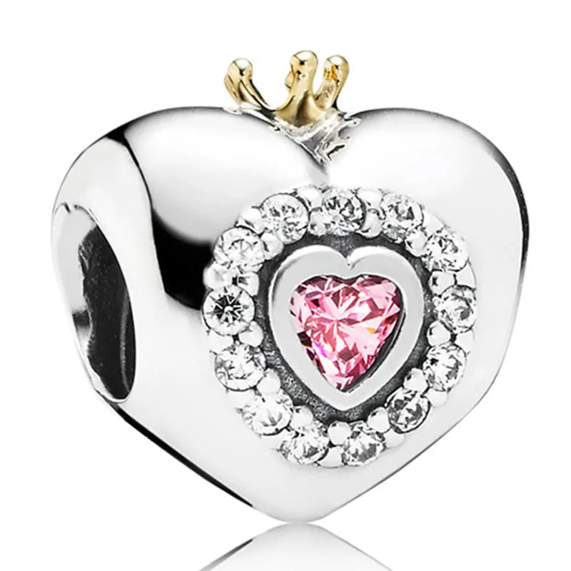 Love Wedding Crown Heart Charm 925 Silver Beads for Bracelet