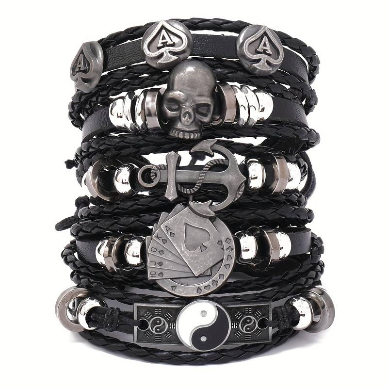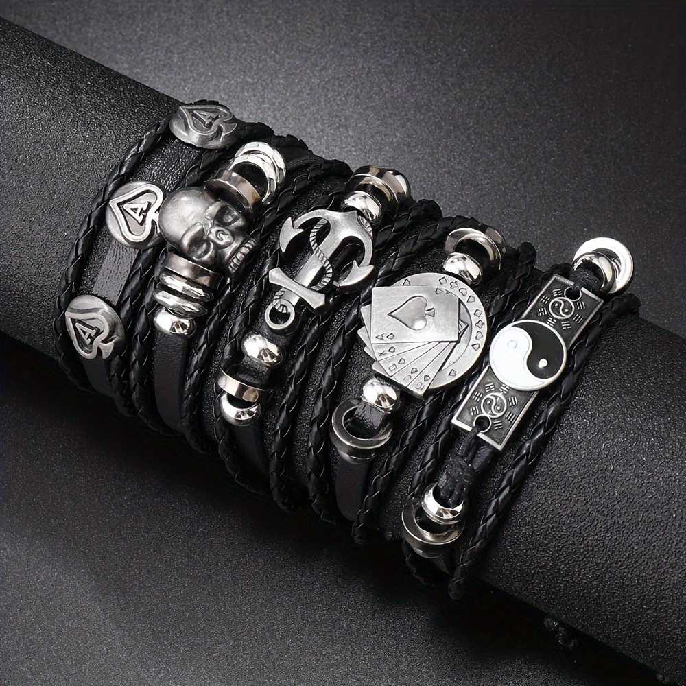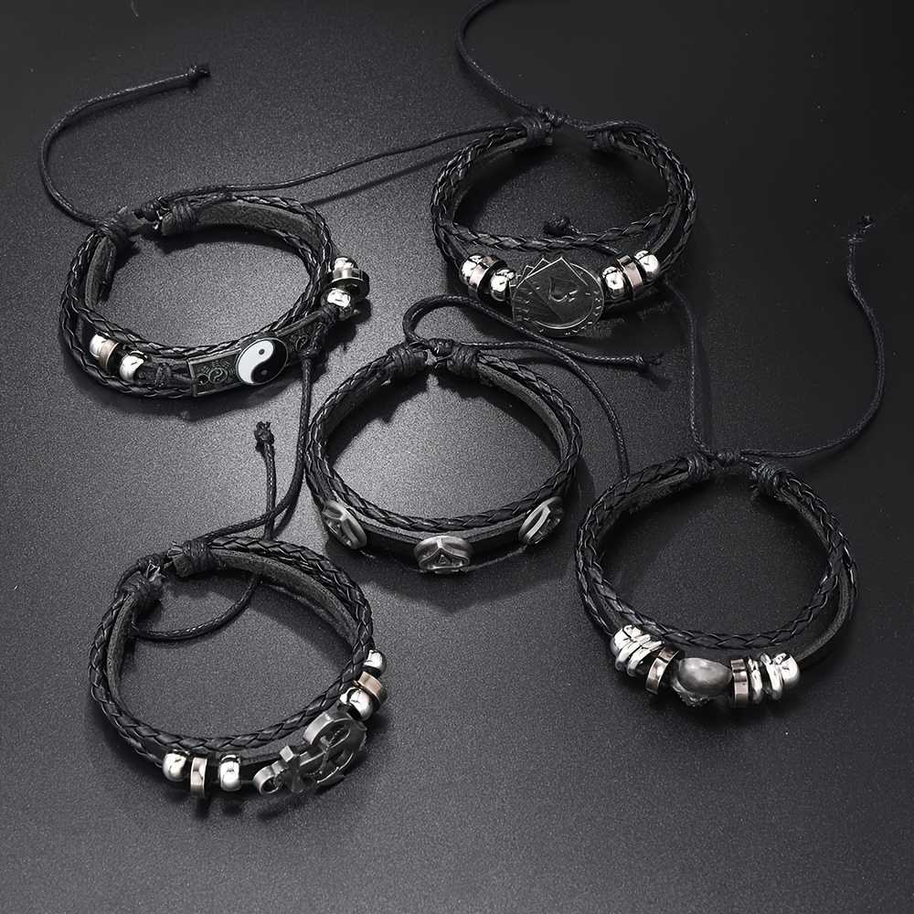 Men's 5Pcs Multi Layered Leather Bracelet Set