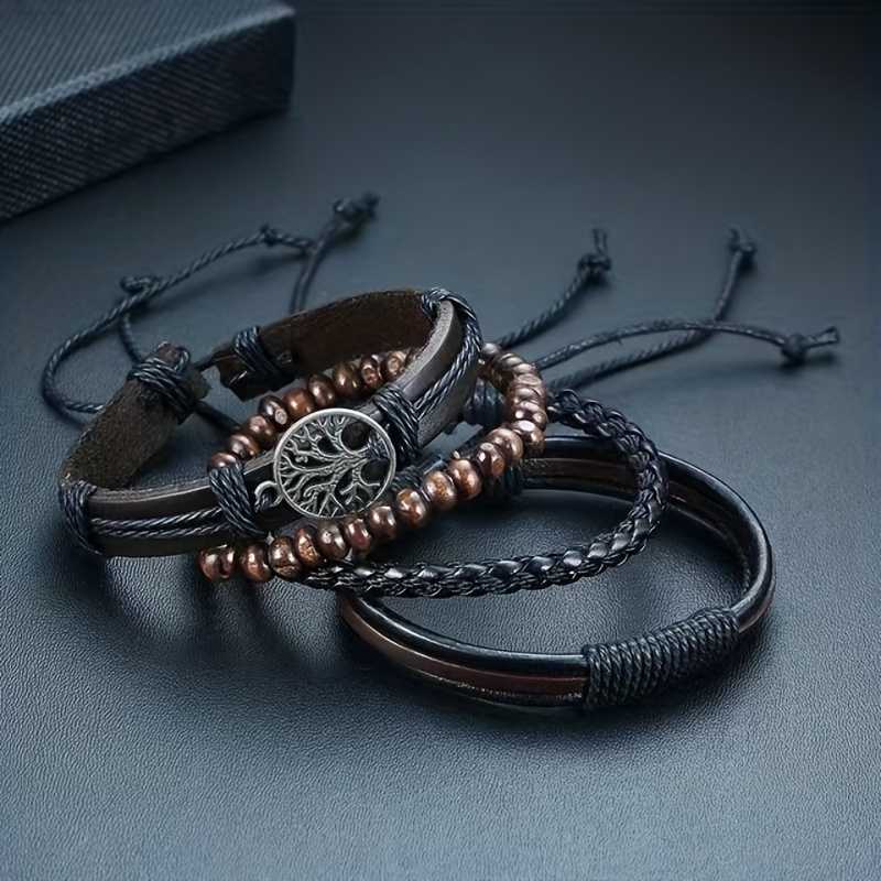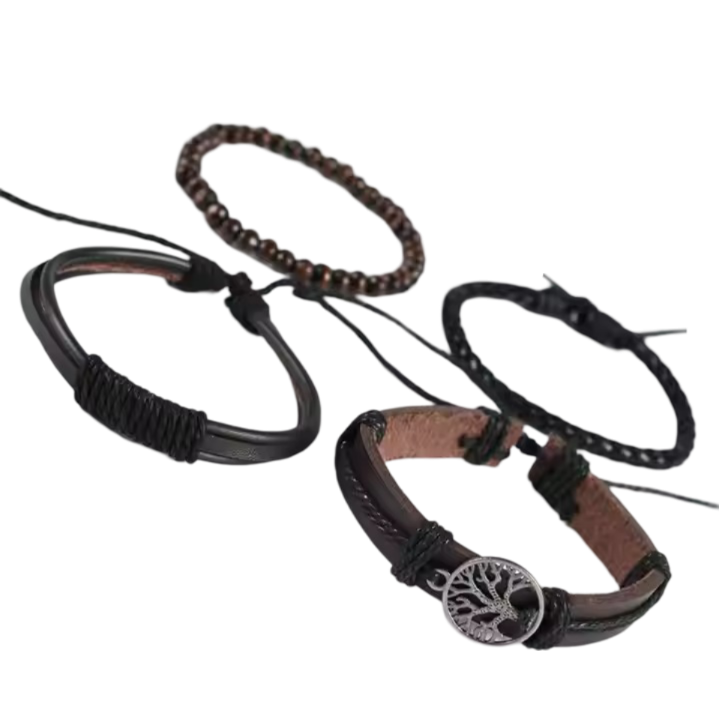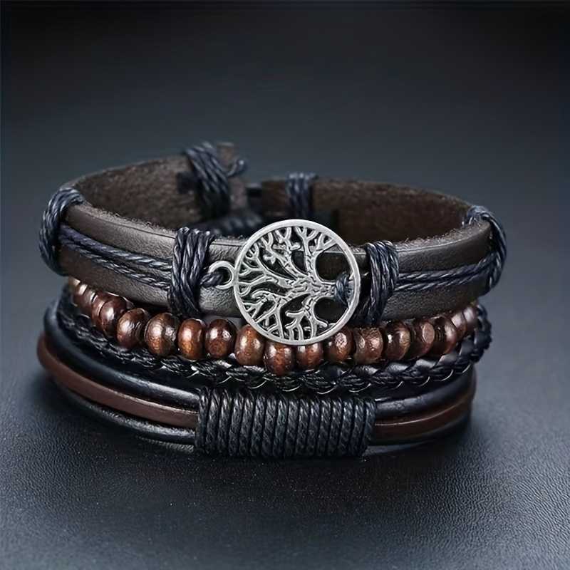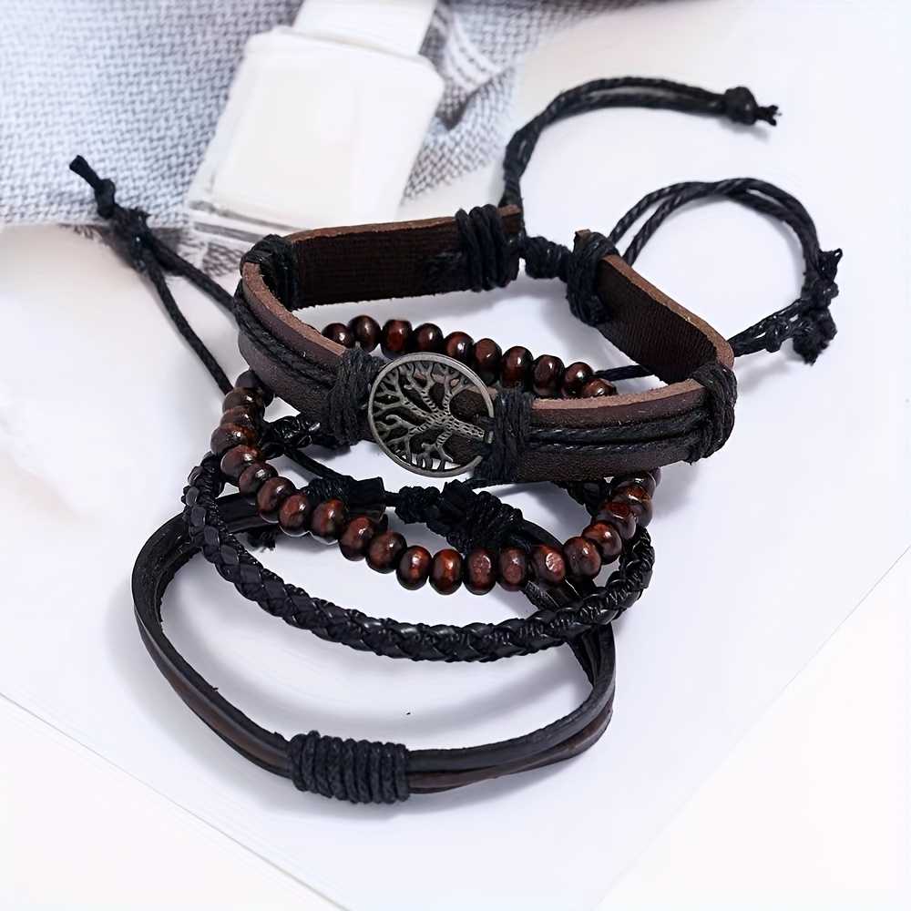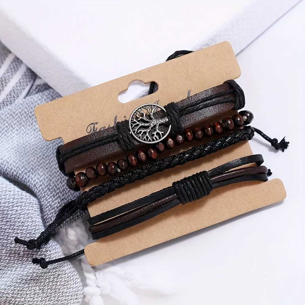 Bling Queen is an affordable fashion jewellery brand with various product types like bracelets, necklaces, earrings, rings, etc. suitable for women, men and kids. The Men's Multi Layer Black Leather Wooden Life Tree Rope Braided Brown Stone Bracelet is a striking representation of craftsmanship and natural beauty. At the heart of the bracelet is a beautifully crafted wooden charm depicting the life tree, symbolizing growth, strength, and interconnectedness. The wooden element contrasts elegantly with the rich black leather, which is thoughtfully braided into multiple layers, offering a textural depth and visual interest that enhances the overall design. The inclusion of brown stone beads further enriches the bracelet's aesthetic, introducing a natural element that complements the leather and wood. The bracelet is designed with comfort in mind, featuring a rope style that allows for flexibility and ease of wear. The multi layer structure not only adds depth but also provides a secure fit around the wrist.