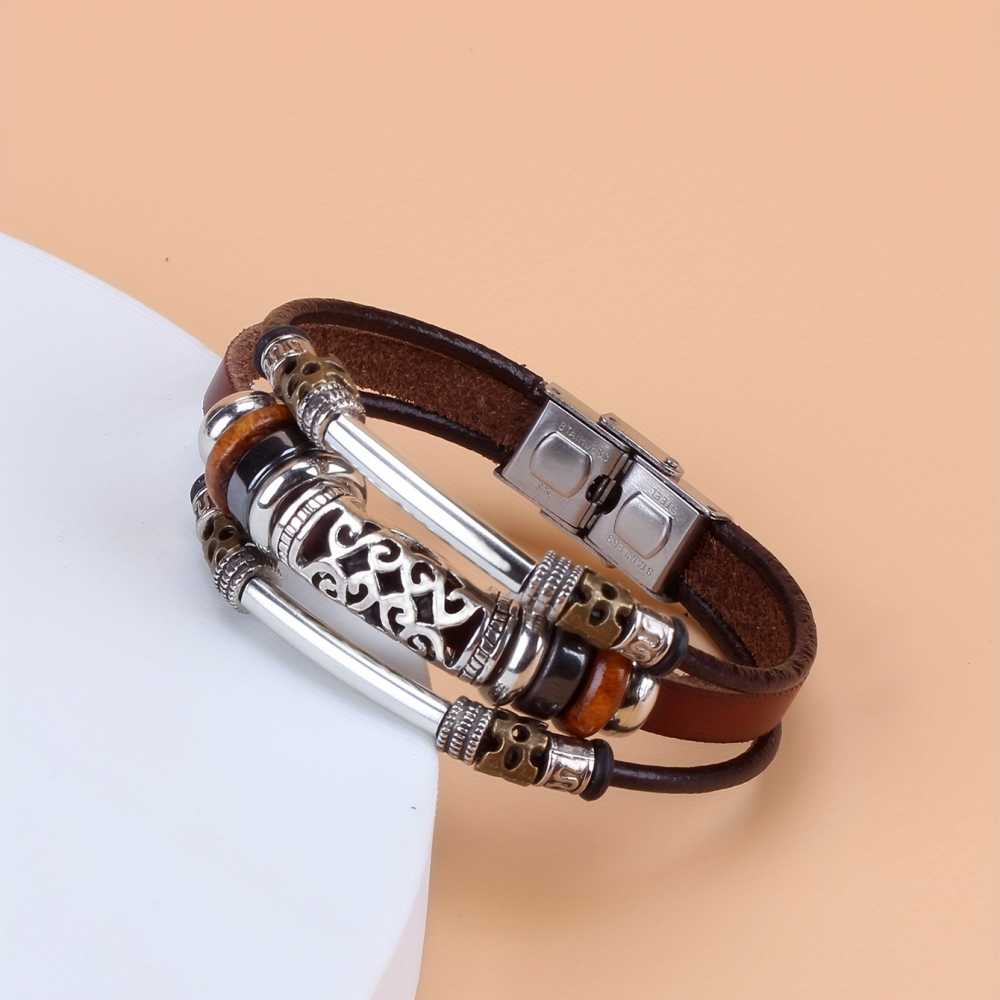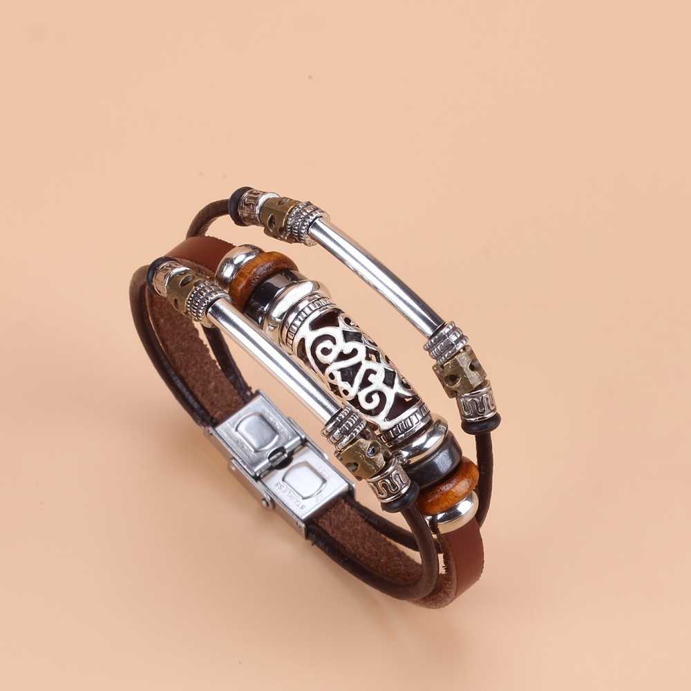 • Product Particulars: This leather bracelet is made of high quality material plated with stainless steel. Crafted with secure, comfortable and easy closure.