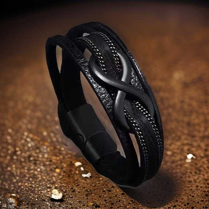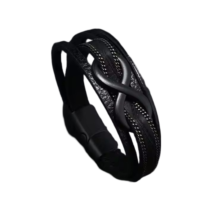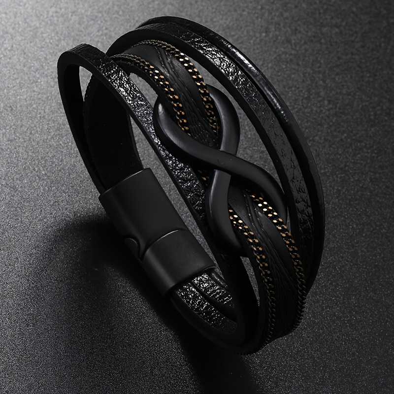 Men's Multi Layer Black Leather Infinity Braided Magnetic Bracelet