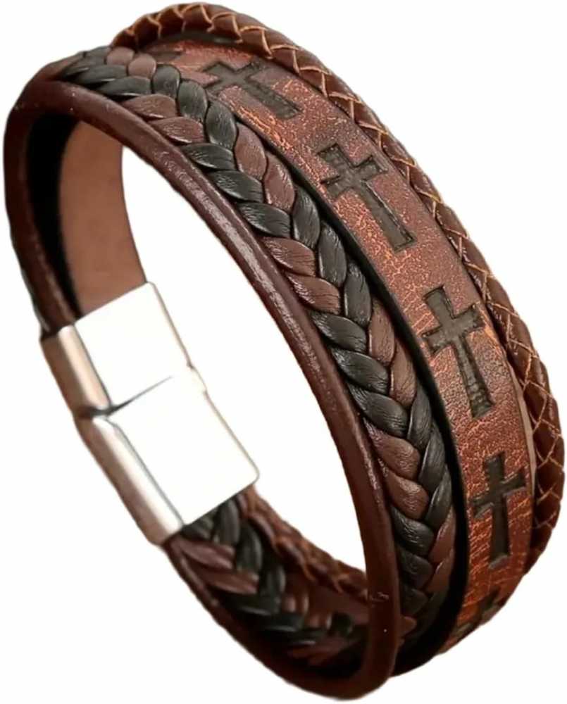 Bling Queen is an affordable fashion jewellery brand with various product types like bracelets, necklaces, earrings, rings, etc. suitable for women, men and kids.The Men's Multi Layered Cross Leather Rope Bracelet with Twisted Braids is a striking fusion of faith and fashion. This unique piece features multiple layers of high quality leather, intricately braided to create a textured and dynamic look. The prominent cross charm serves as a bold focal point, symbolizing strength and devotion. The combination of smooth and twisted braids adds depth and character, while the adjustable clasp ensures a comfortable fit for any wrist size. Perfect for everyday wear or special occasions, this bracelet embodies a rugged elegance that speaks to individual style and spiritual connection.