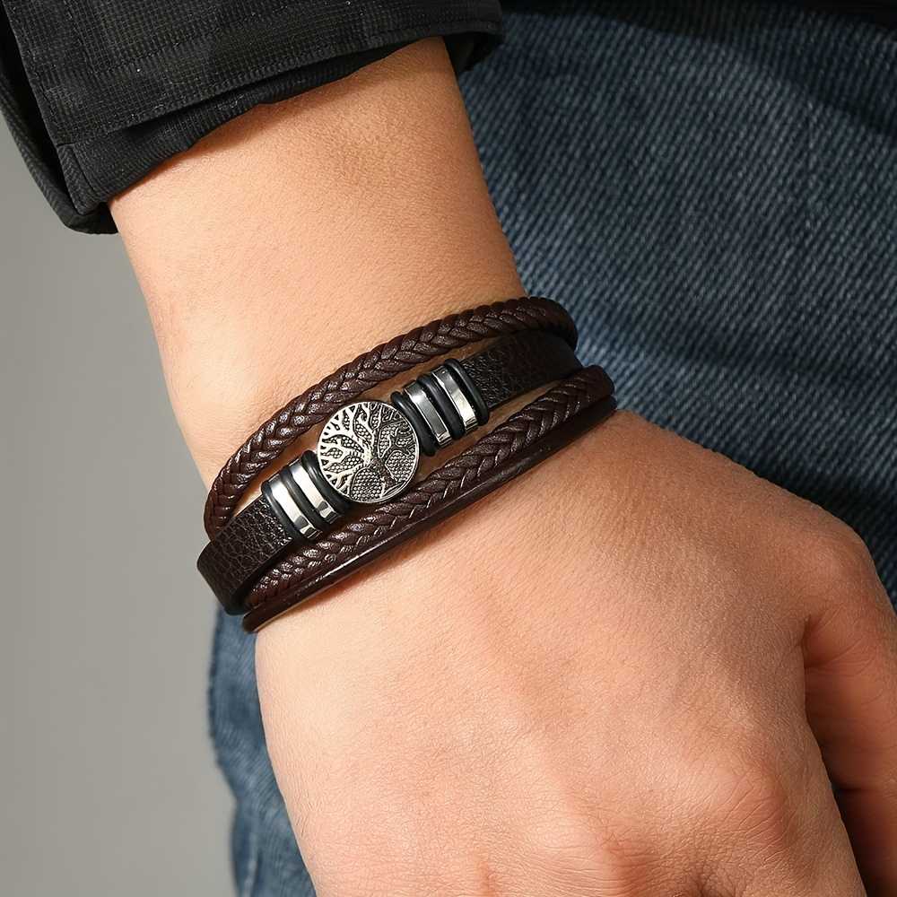 Men's Silver Plated Multi Layered Braided Magnetic Buckle Bracelet