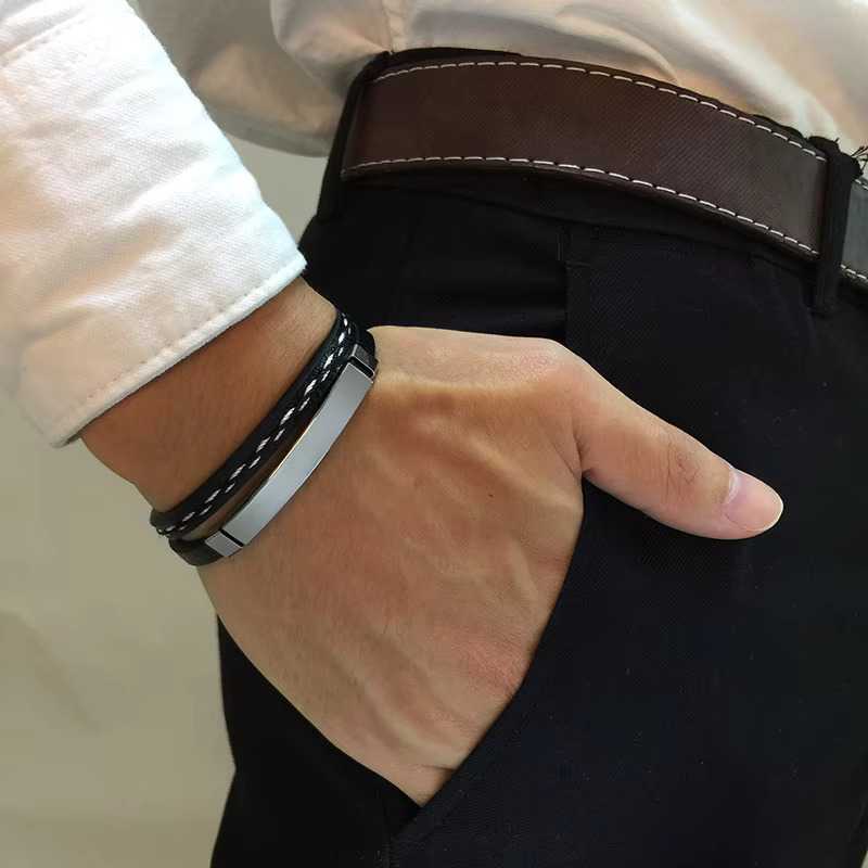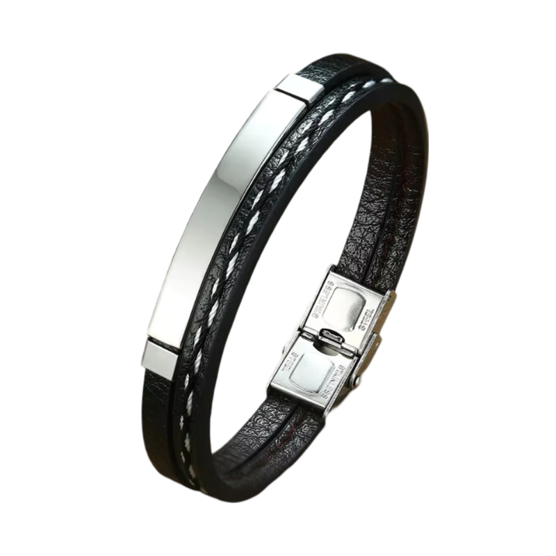 Bling Queen is an affordable fashion jewellery brand with various product types like bracelets, necklaces, earrings, rings, etc. suitable for women, men and kids. At the heart of this bracelet lies high quality black leather, chosen for its luxurious texture and comfort. The leather is treated to ensure it remains supple while maintaining its natural grain, offering a classic aesthetic that enhances any outfit. Its deep black color provides versatility, allowing it to complement a wide range of styles, from casual wear to formal attire. The bracelet features a striking slot design that sets it apart from traditional leather bracelets. The slots add a dynamic visual element, creating an intriguing interplay between the leather and the stainless steel layers. This design not only enhances the bracelet’s aesthetic appeal but also emphasizes the craftsmanship involved in its creation. The inclusion of stainless steel in the design elevates the bracelet’s modernity. The rectangular layers of polished stainless steel contrast beautifully with the matte leather, creating a sophisticated balance.