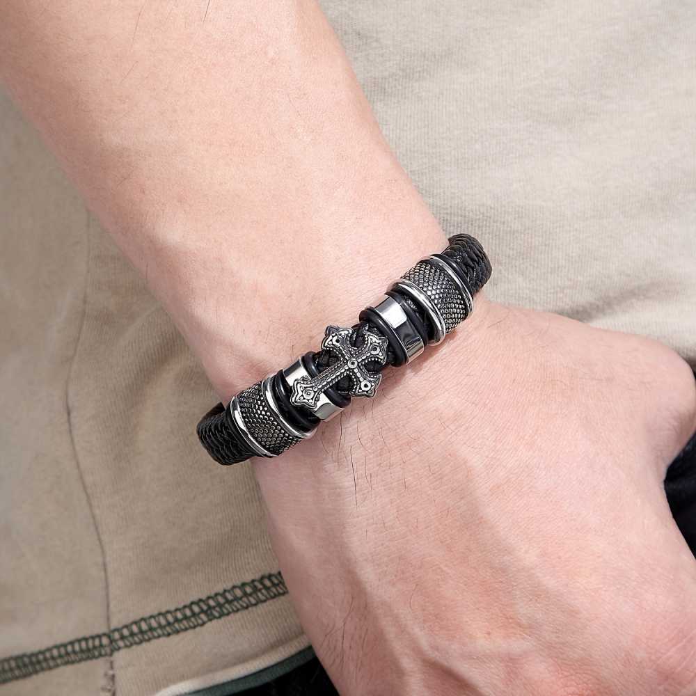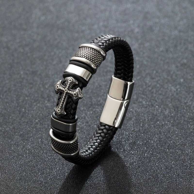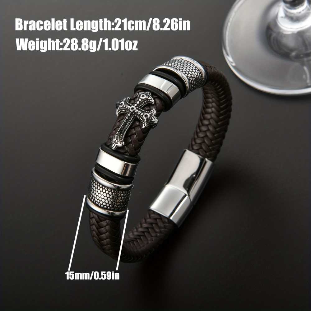 Men's Vintage Style Cross Leather Stainless Steel Buckle Bracelet