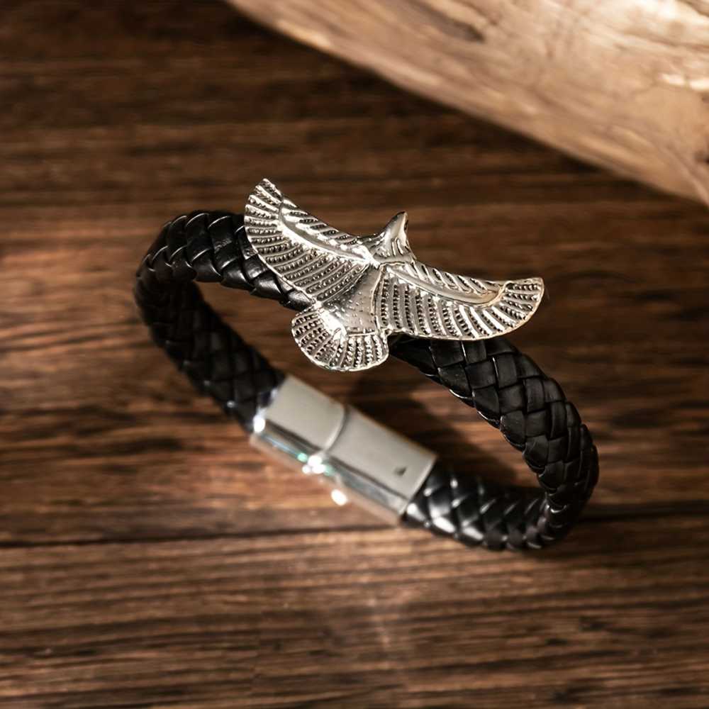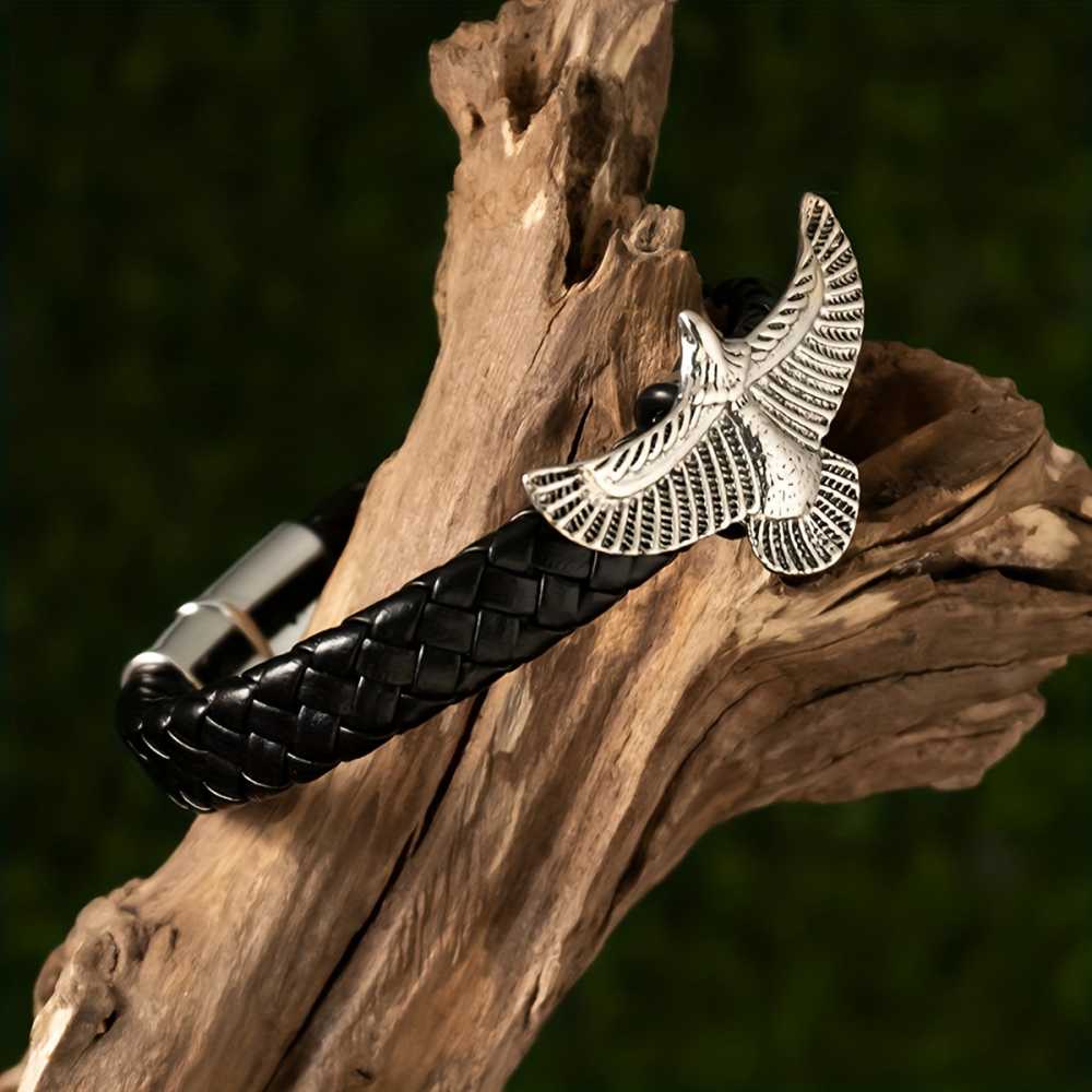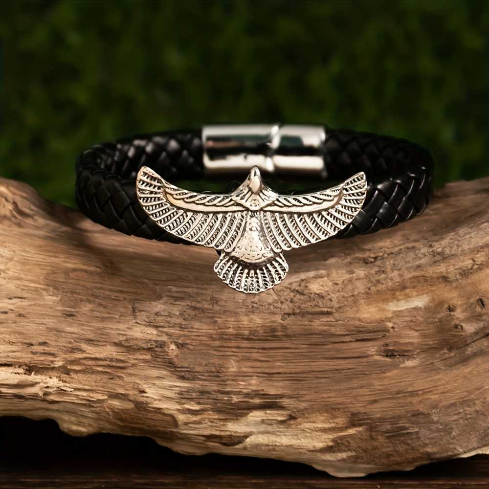 Men's Vintage Style Eagle Stainless Steel Leather Buckle Bracelet