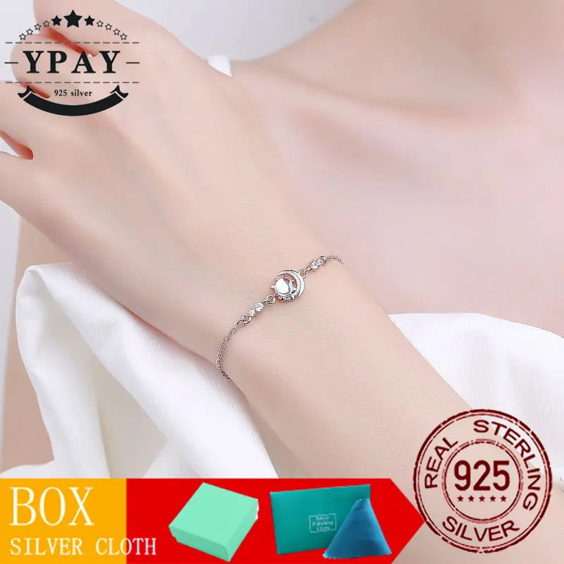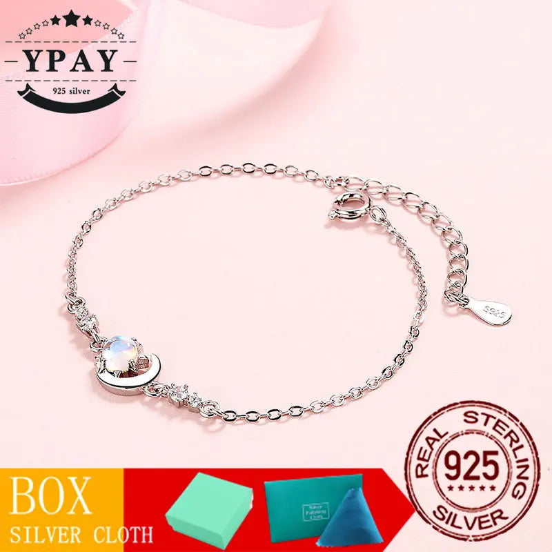 This elegant S925 bracelet features moonstone and a diamond star design, making it a perfect gift for your girlfriend.