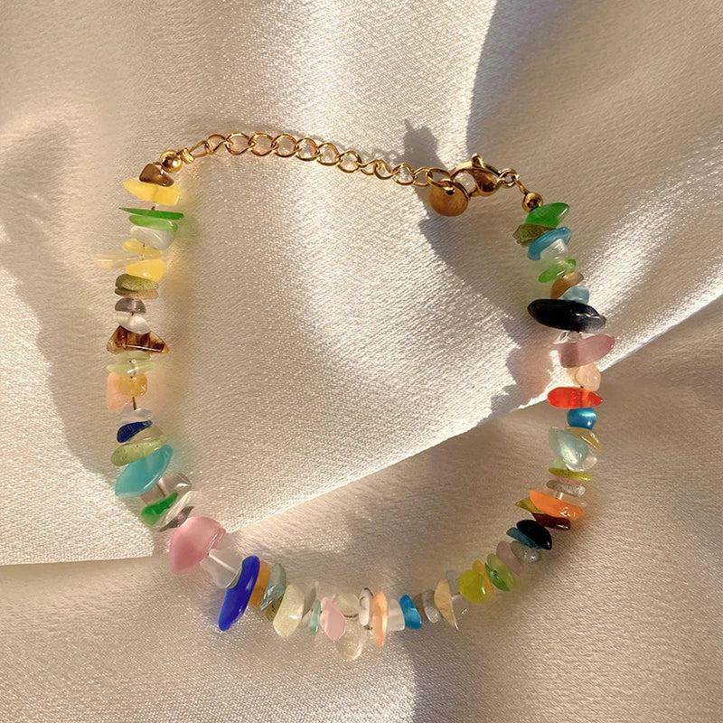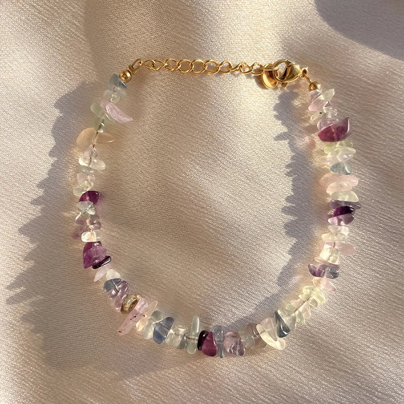 Adjustable chain quartz crystal stone bangle crafted for women. This beautiful bracelet is a perfect accessory and makes a great gift for girls.
