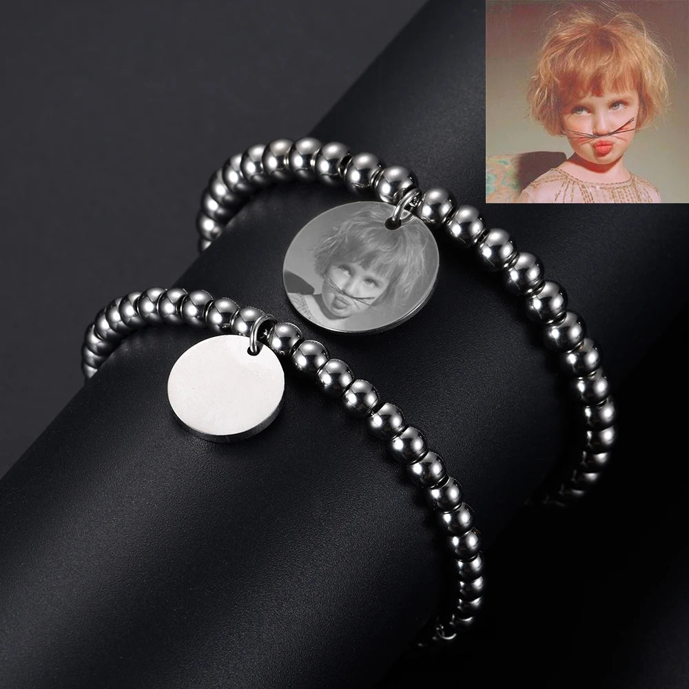 This stainless steel DIY charm bangle is perfect for women and men. Customize it with a photo or name to create a unique and meaningful piece of jewelry.