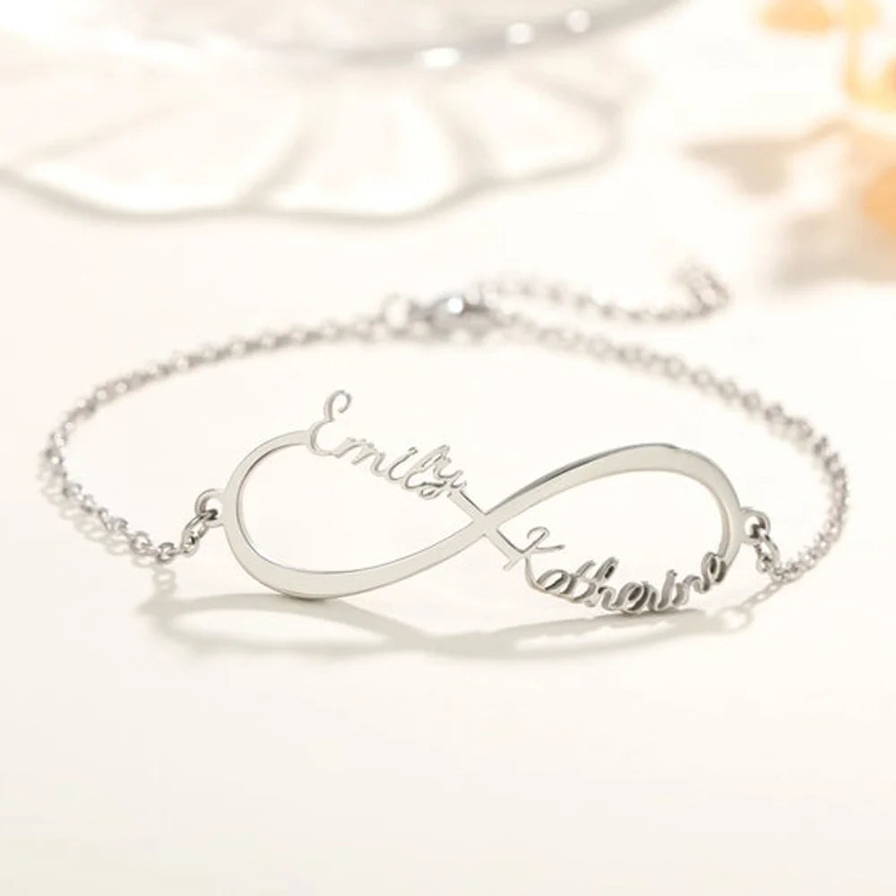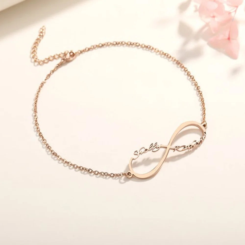 This elegant bracelet features an infinity symbol pendant and nameplate, making it a perfect party jewelry gift for women.