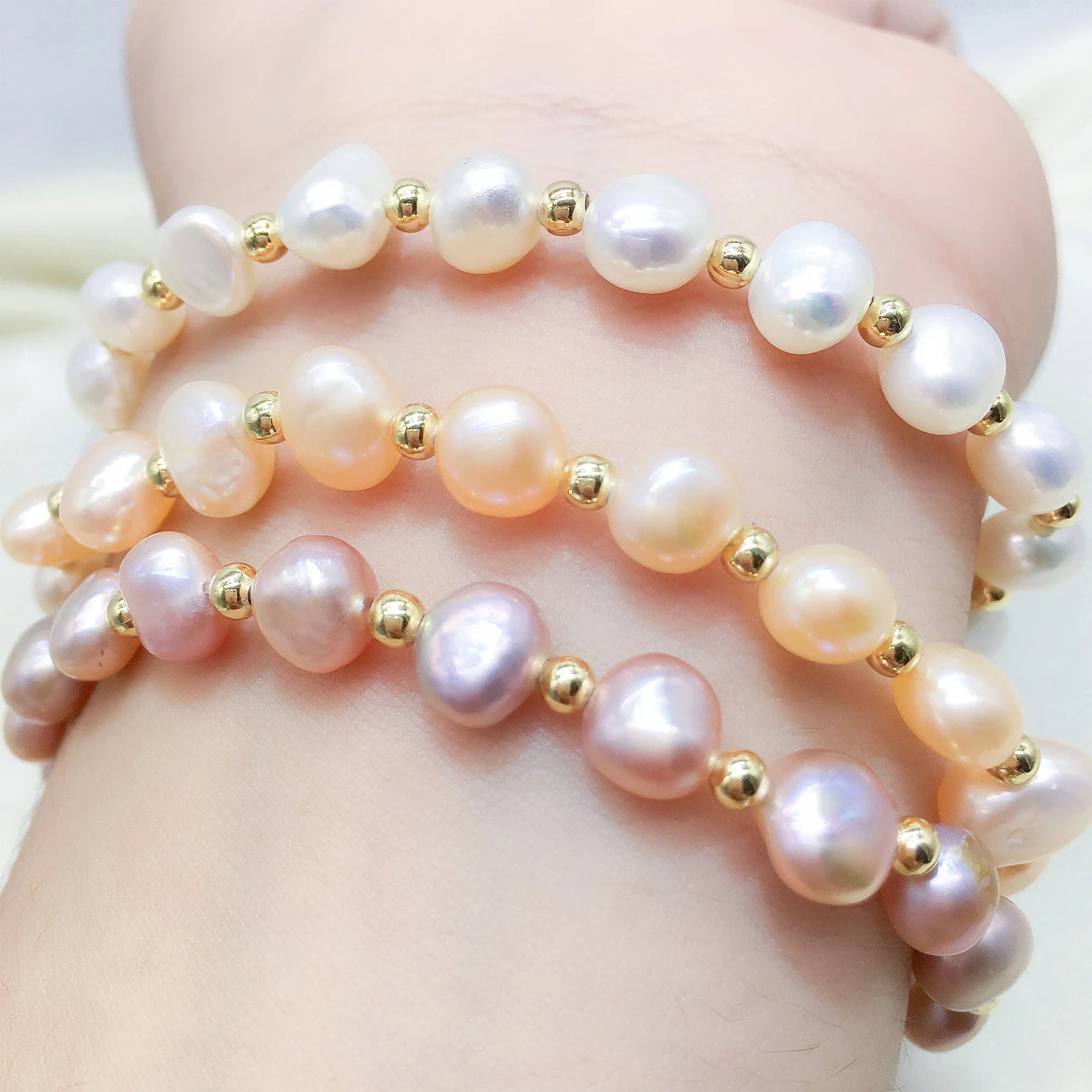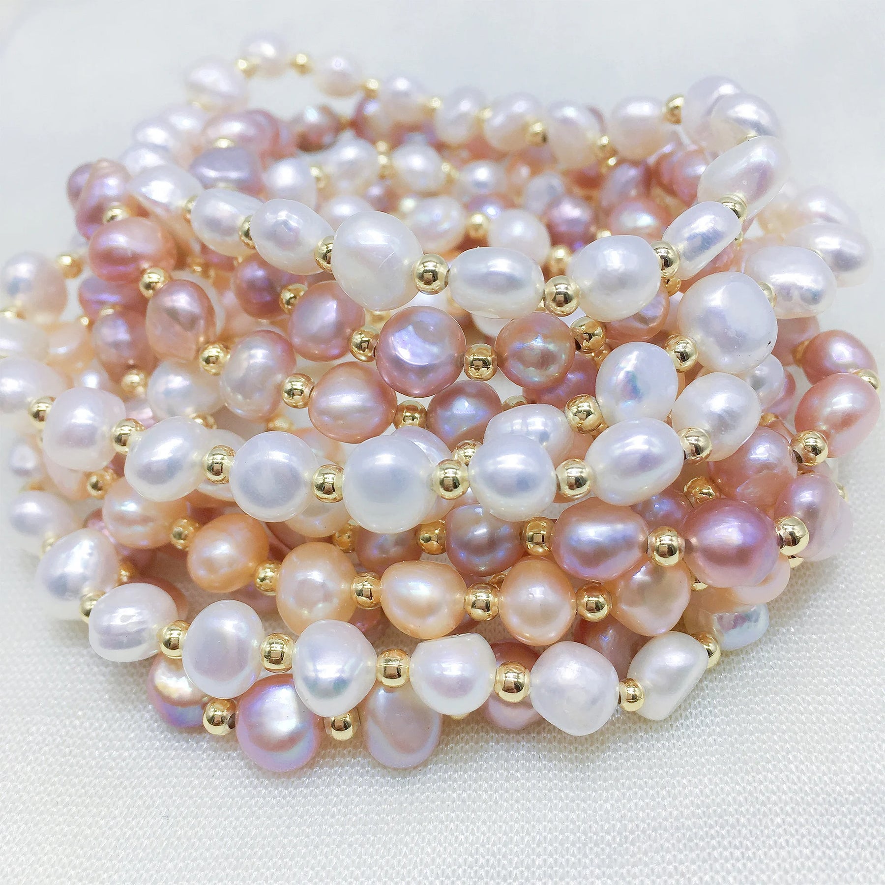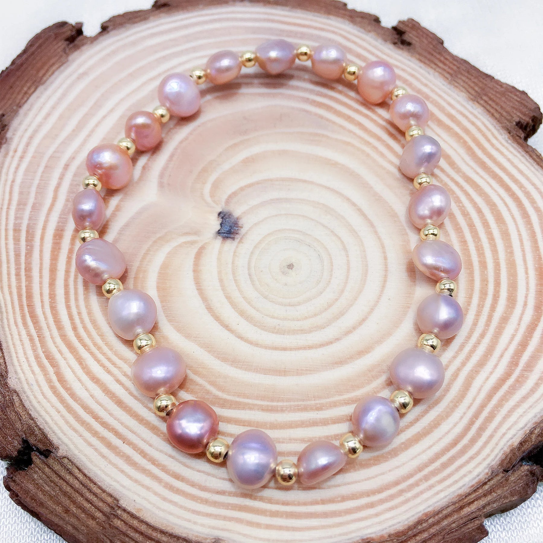 Adorn your wrist with this beautiful freshwater pearl bracelet featuring natural pink and purple hues. The perfect gift for women who appreciate elegance and sophistication.