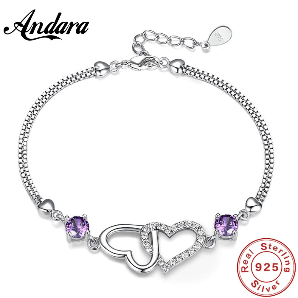 This stunning S925 sterling silver bracelet features natural amethyst and zircon in a heart design, making it a perfect gift for weddings or special occasions.