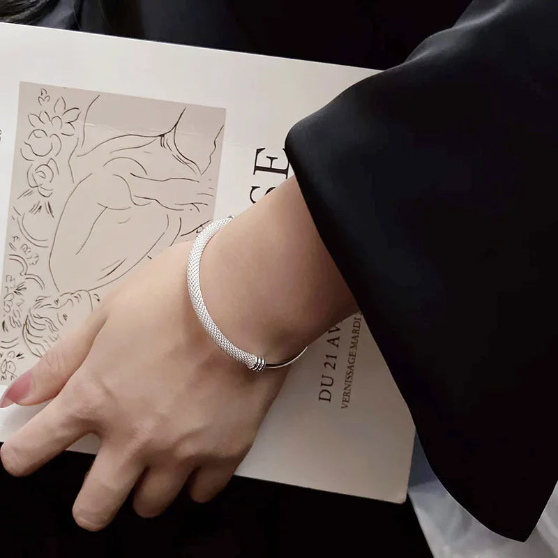 This stunning women's bracelet features a silver hollow grid pattern design. It is elegant and versatile, perfect for any occasion.