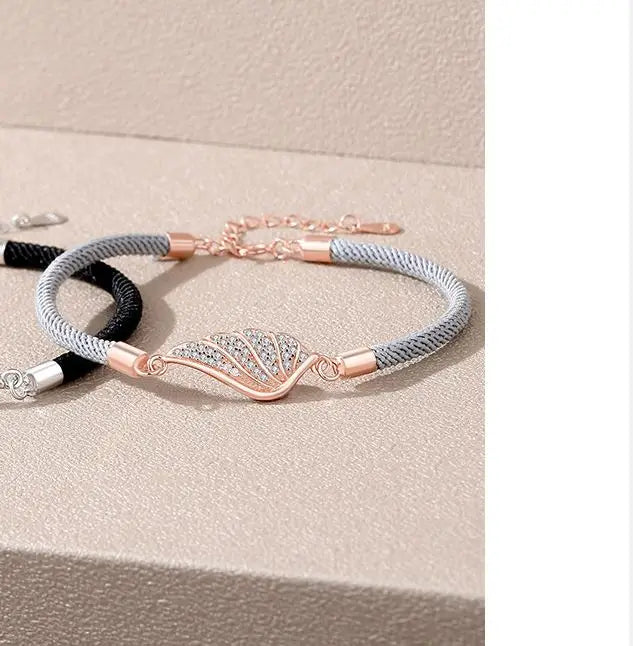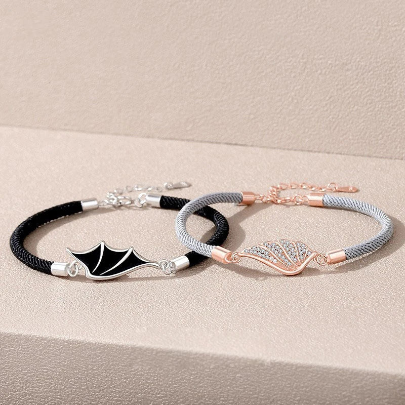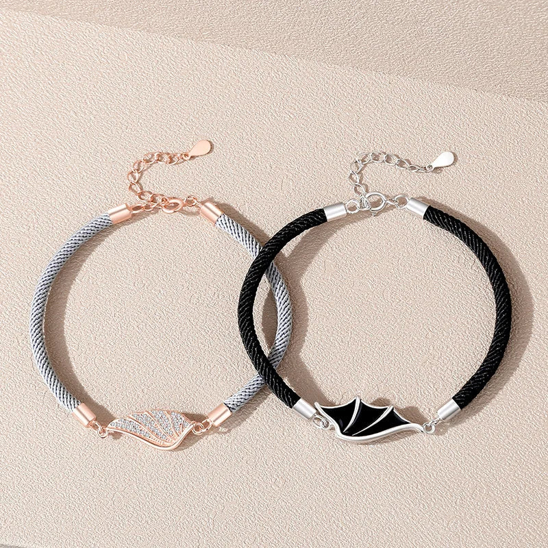 This silver bracelet features a unique design with zircon-studded angel and devil wings. Perfect gift for couples or loved ones. The creative and stylish design adds a touch of personality to any outfit.