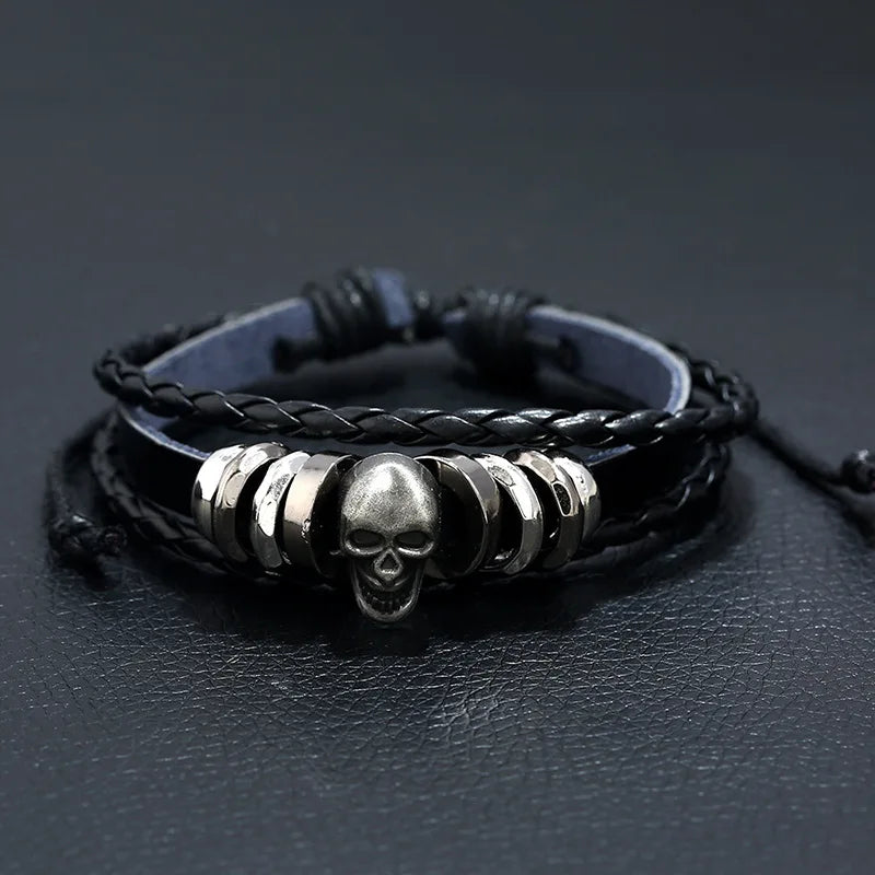 Elevate your style with this edgy skull beaded men's bracelet crafted from cowhide leather. A statement accessory perfect for casual or formal wear.