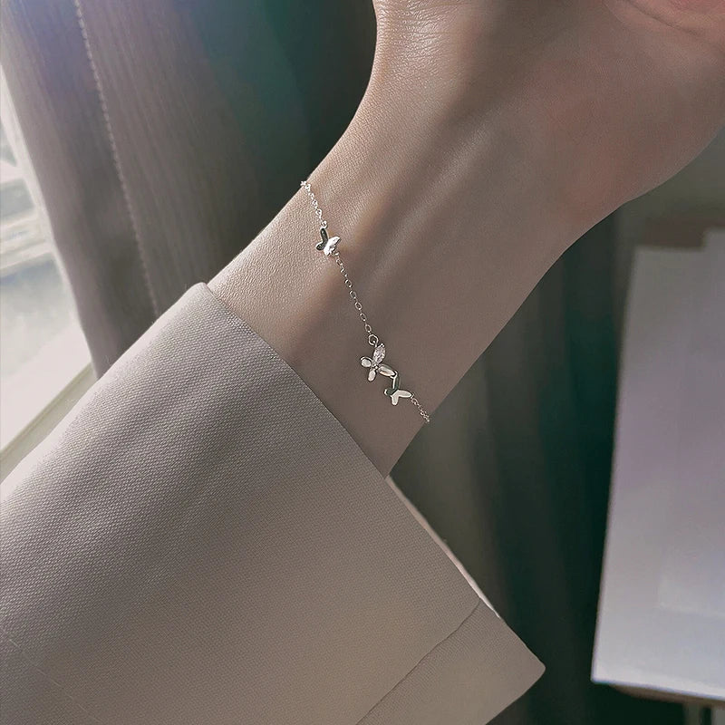 This elegant bracelet features a sterling silver 925 lobster clasp chain with a flying butterfly charm. The perfect accessory for women to add a touch of elegance to any outfit.