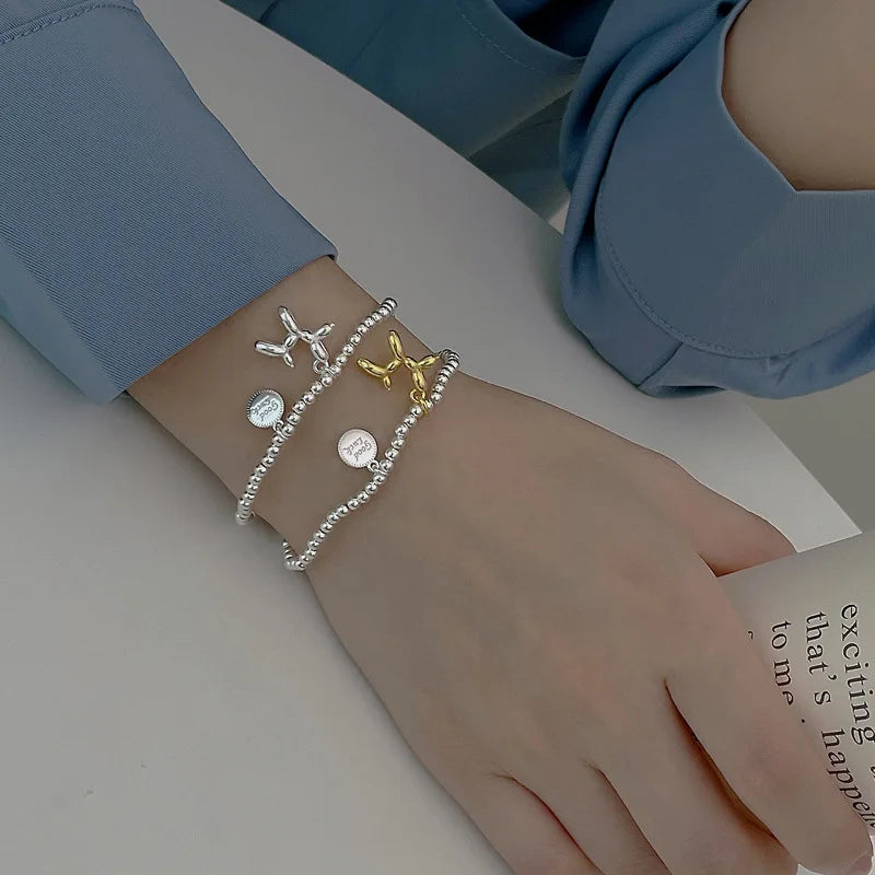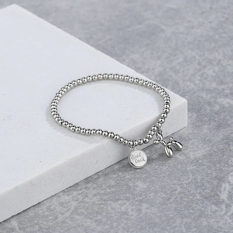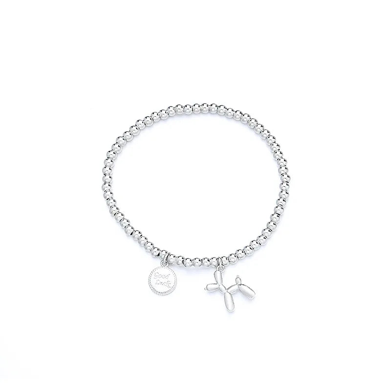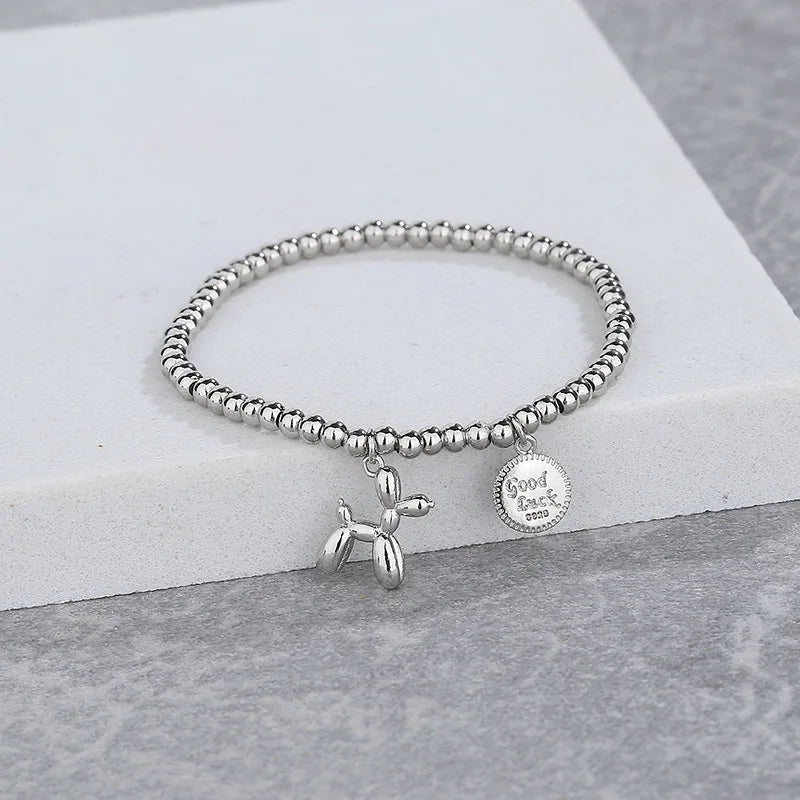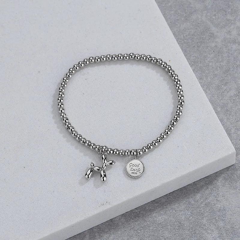 This elegant sterling silver bracelet features a playful balloon dog charm and small round beads. A perfect gift for any stylish lady.